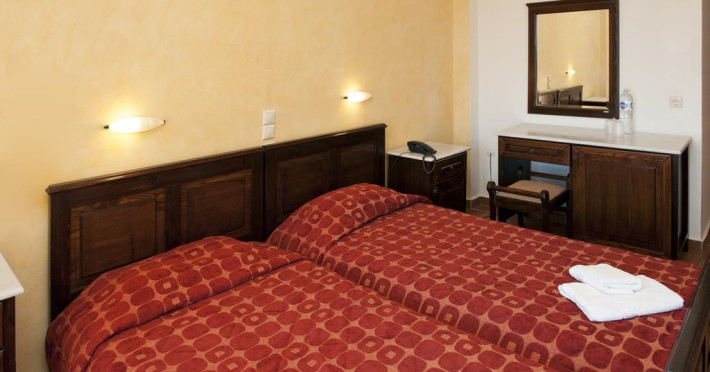 Camerele confortabile de la Apollon Hotel sunt dotate cu pardoseală de gresie/ marmură, aer condiționat, Tv și seif. În camere există baie cu cadă sau duș ce are în dotare foehn și articole de toaletă gratuite. Unele camere au balcon cu vedere la mare, unde oaspeții pot admira apusul sau răsăritul soarelui. Oaspeții au acces gratuit la serviciul Wi-fi în camere. Curățenia in cameră se face zilnic. Fiecare unitate de cazare are frigider. De asemenea, este disponibilă o zonă de luat masa. Proprietatea oferă camere pentru nefumători.