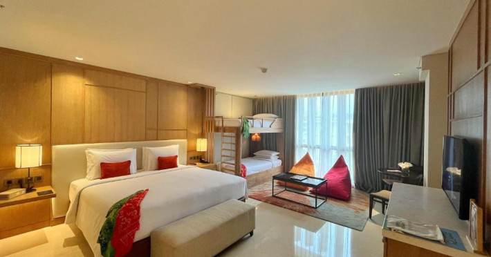 Fiecare cameră spațioasă este dotată cu o canapea, un televizor cu ecran plat și un frigider. Anumite camere de la Aryaduta Bali au balcon, dar toate camerele cu aer condiționat sunt dotate cu o baie privată.