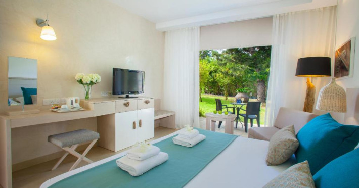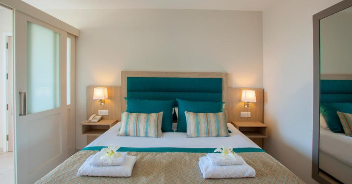În camere există baie cu cadă sau duș, foehn, articole de toaletă gratuite, precum și halate de baie și papuci. Unele camere au balcon cu vedere la piscină. Fiecare cameră dispune de un aparat pentru preparare cafea sau ceai, cană-fierbător și minibar. Oaspeții pot solicita serviciul de room service pentru a servi masa sau diverse băuturi. Camerele confortabile de la Atlantica Aeneas au pardoseală de gresie/ marmură, aer condiționat, Tv cu canale prin satelit și seif. Oaspeții au acces gratuit la serviciul Wi-fi în camere. Curățenia in cameră se face zilnic. Proprietatea oferă camere pentru familie cu o suprafață mai mare și un număr mai mare de paturi față de cele standard.