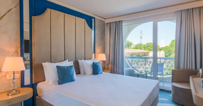 Dotari camere: Camera Queen Classic Family: cu o suprafata de aproximativ 20 mp, dispune de pat matrimonial 160x200 cm si o sofa pentru o persoana de 80x190 cm, mobilier nou, climatizare, seif, birou, wi-fi, TV, telefon, minibar, baie cu cabina de dus, articole de baie, uscator de par, balcon si podele mochetate. Capacitate maxima: 2 adulti si 2 copii.