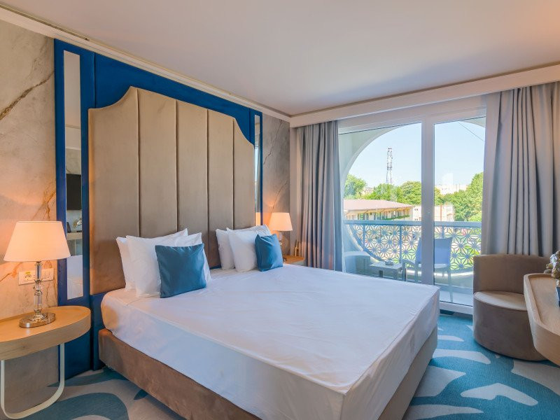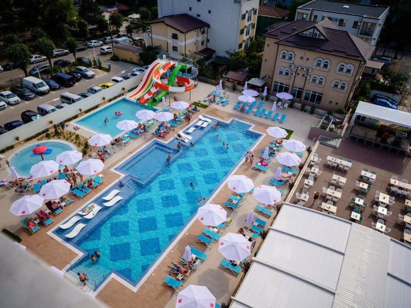Dotari si servicii: Hotelul dispune de 212 camere moderne, amenajate pentru confortul si relaxarea oaspetilor. Restaurantul principal are o capacitate de peste 400 de persoane, iar lobby barul ofera 50 de locuri intr-un ambient elegant si primitor. Complexul include trei sali de conferinta complet echipate, ideale pentru evenimente si intalniri corporate. Zona de agrement este completata de piscine incalzite - o piscina principala destinata relaxarii si doua piscine dedicate copiilor - alaturi de doua terase exterioare perfecte pentru momente de destindere.