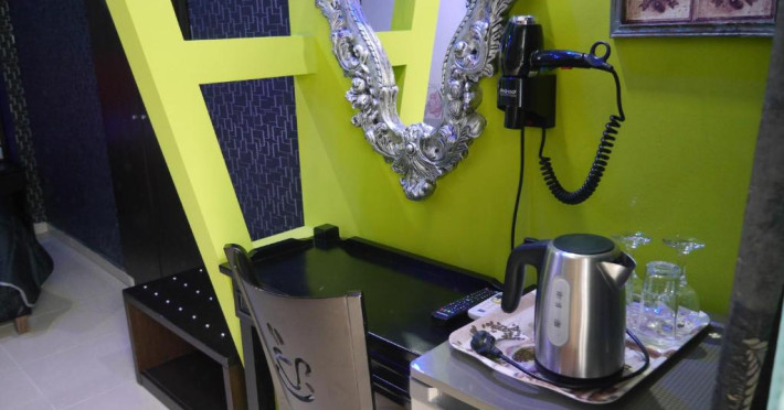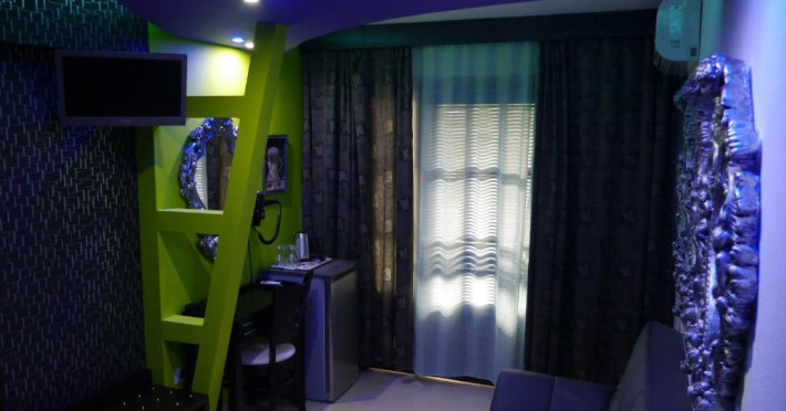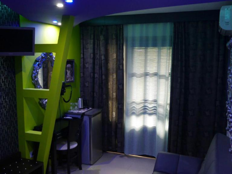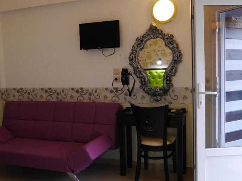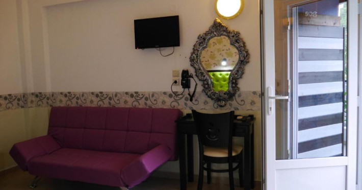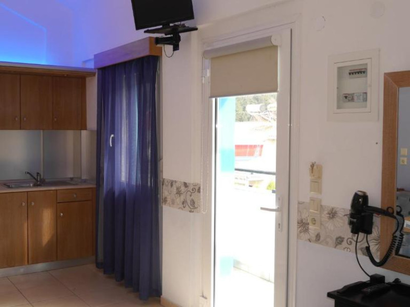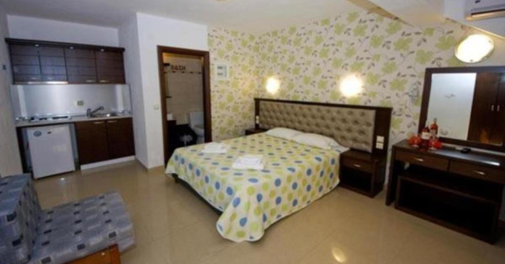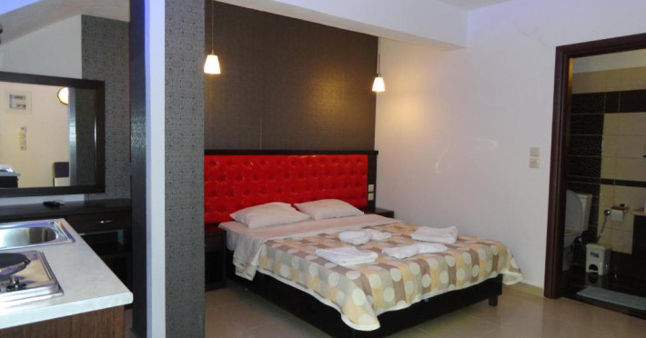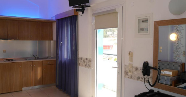 Camerele luminoase și confortabile sunt dotate cu aer condiționat, TV, mini-frigider și balcon, multe dintre ele oferind priveliști spectaculoase spre Marea Egee. Oaspeții se pot bucura de piscina in aer liber inconjurată de șezlonguri și umbrele, precum și de barul de la piscină care servește băuturi răcoritoare și cocktailuri.