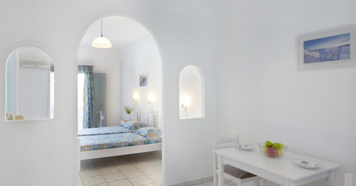 Cel mai apropiat aeroport este Aeroportul Internaţional din Santorini, situat la o distanță de 3,6 km. La cerere proprietatea organizează transfer la/de la aeroport contra cost.