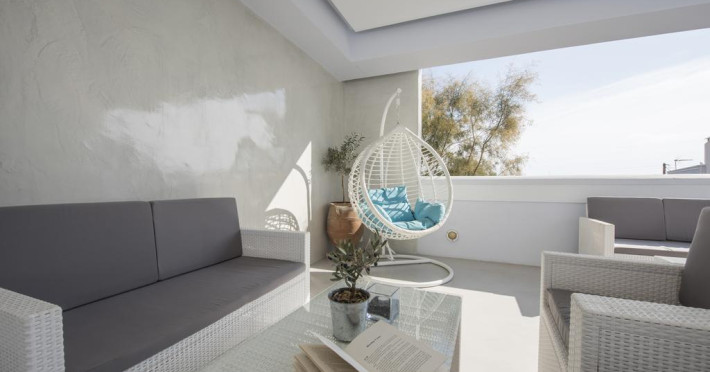 Cel mai apropiat aeroport este Aeroportul Internaţional din Santorini, situat la o distanță de 3,5 km. La cerere proprietatea organizează transfer la/de la aeroport contra cost.