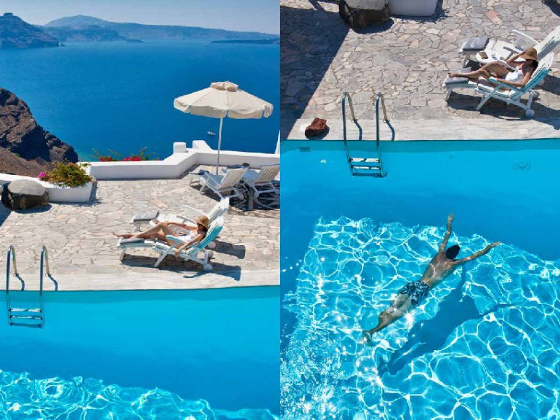 Facilitati si servicii: Piscina cu o vedere splendida spre Caldera,Pool bar,biblioteca, parcare private gratuita, Recepie 24 ore Servicii zilnice de curatenie Room service serviciu de concierge serviciu de spalatorie Wi-Fi gratuit Toti oaspetii de Canaves Oia hotel sunt intampinati la sosire cu o bautura racoritoare din partea casei, vin traditional din Santorini si fructe in camera.
