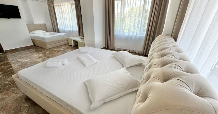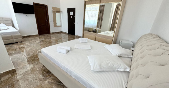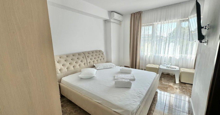 Aceasta este compusa din 35 de camere duble si triple, amenajat cu mult bun gust, foarte modern,, mobilate modern si utilate astfel incat sa va asigure maximul de confort. Camerele amenajate cu gust, cu mobilier elegant au TV, frigider, aer conditionat si baie privată. Oaspetii se pot relaxa pe terasa mobilată a proprietătii. Centrul medical Grand este situat la 2 minute de mers pe jos, iar Centrul Balnear Techirghiol se află la 1,5 km. Gara principală este la 2 km de Casa Grande, iar autogara se găseste la 50 de metri.