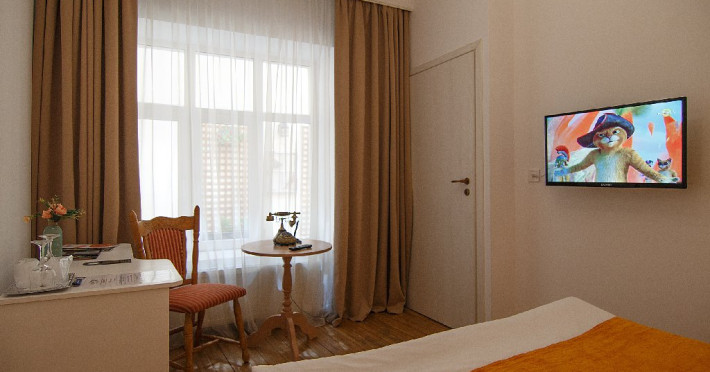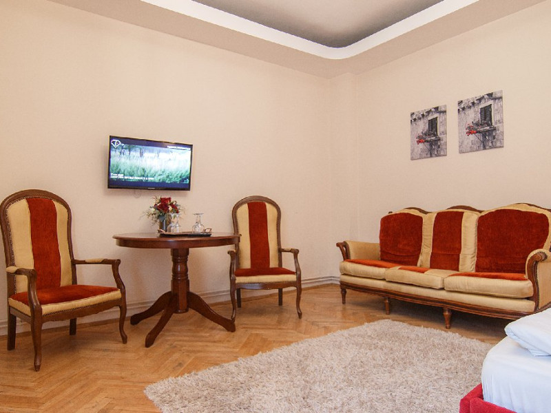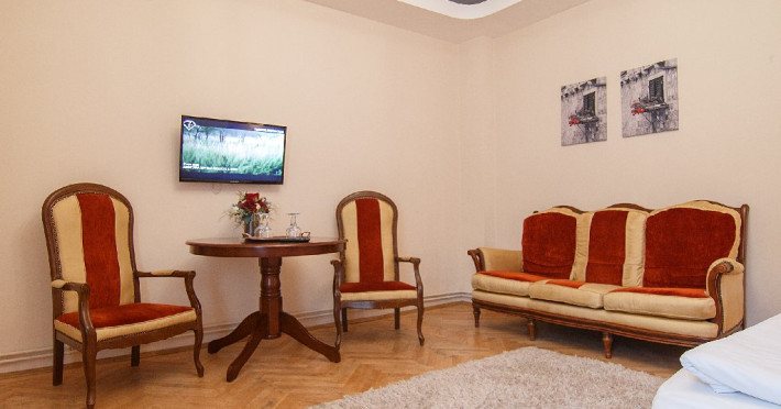 Camerele dispun de: - paturi matrimoniale pentru duble si pat matrimonial + pat single pentru triple - telefon cu acces intern - televiziune prin cablu - LCD TV - acces internet wireless - radio ceas Apartamentele dispun suplimentar de: - 2 dormitoare cu paturi matrimoniale