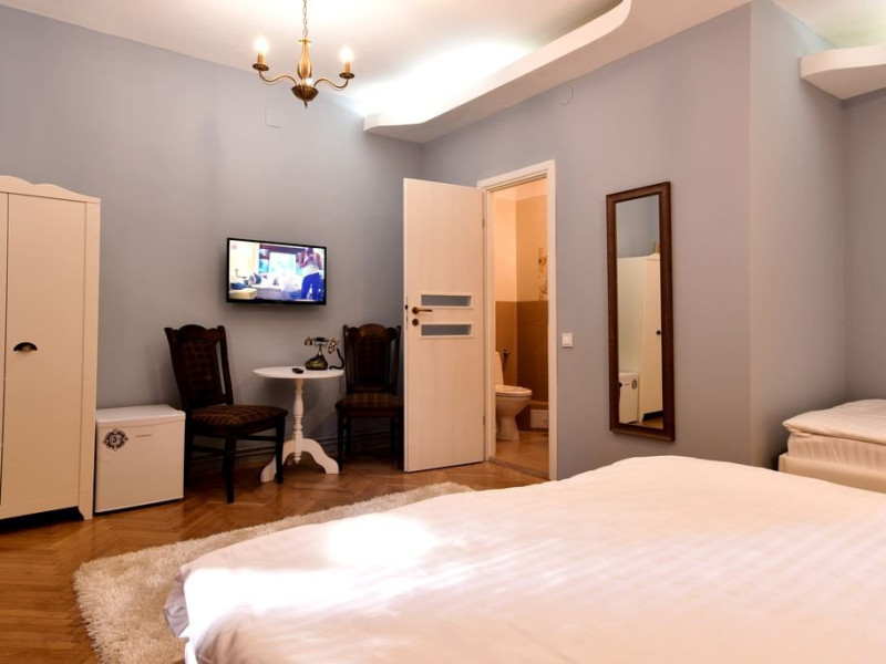 DESCRIERE CAMERE Structura camere: Camera 1 - tripla - 1 pat dublu si 1 pat single, 3 adulti si 1 copil pana la 7 ani inclusiv - baie cu dus Camera 2 - tripla - 1 pat dublu si 1 pat single, 3 adulti si 1 copil pana la 7 ani inclusiv - baie cu cada Camera 3- dubla - 1 pat dublu, 2 adulti si 1 copil pana la 7 ani inclusiv -baie cu dus Camera 4 - dubla - 1 pat dublu, 2 adulti si 1 copil pana la 7 ani inclusiv -baie cu cada Camera 5 - dubla - 1 pat dublu, 2 adulti si 1 copil pana la 7 ani inclusiv -baie cu dus Camera 6 - dubla - 1 pat dublu, 2 adulti si 1 copil pana la 7 ani inclusiv -baie cu dus Camera 7 - dubla- 1 pat dublu, 2 adulti si 1 copil pana la 7 ani inclusiv -baie cu dus Camera 8 - suita/ap - 2 paturi duble, 4 adulti si 1 copil de 7 ani inclusiv, baie cu cada Camera 9 - suita/ap - 2 paturi duble, 4 adulti si 1 copil de 7 ani inclusiv, baie cu dus Camera 10 - dubla- 1 pat dublu, 2 adulti si 1 copil pana la 7 ani inclusiv -baie cu dus Camera 11- tripla - 1 pat dublu si 1 pat single, 3 adulti si 1 copil pana la 7 ani inclusiv -baie cu dus Camera 12 - dubla - 1 pat dublu, 2 adulti si 1 copil pana la 7 ani inclusiv -baie cu dus Camera 13 - Suita/ap- 2 paturi duble, 4 adulti si 1 copil de 7 ani inclusiv- baie cu cada