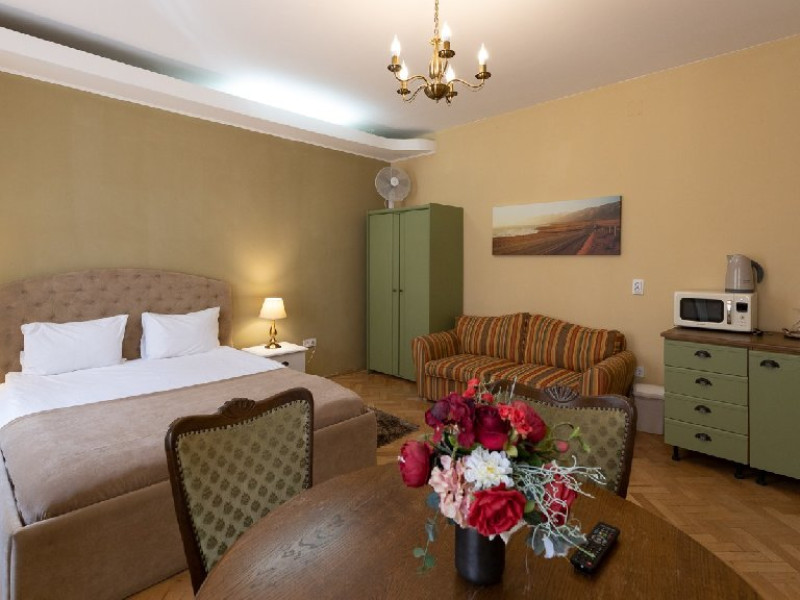 DESCRIERE UNITATE DE CAZARE Pozitionata perfect pe Strada Nicolae Balcescu nr. 26, Casa Monte Verde iti ofera combinatia ideala intre farmecul istoric si confortul modern, chiar in centrul Brasovului. Cladirea este un monument istoric construit in secolele XVIII-XIX, cunoscuta drept Casa Cincinat Pavelescu, in memoria celebrului poet si epigramist roman. Casa Monte Verde a fost renovata cu grija pentru a pastra detaliile autentice, dar fara sa renunte la confortul zilelor noastre. Fiecare camera si apartament este amenajat cu un mix de elemente vintage si accente contemporane, creand un spatiu placut prin simplitate si gust.
