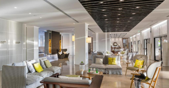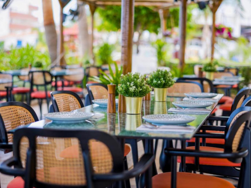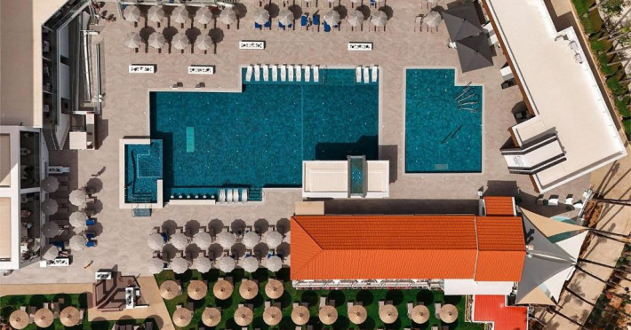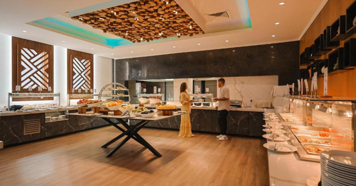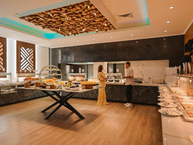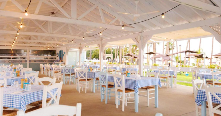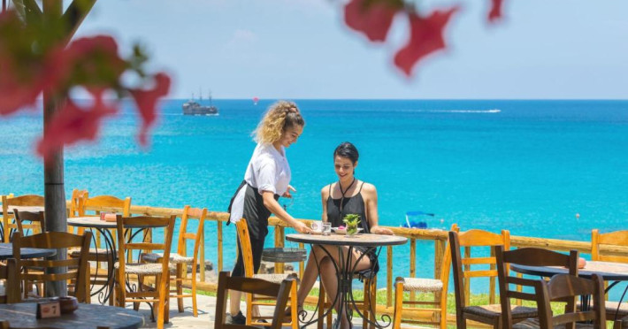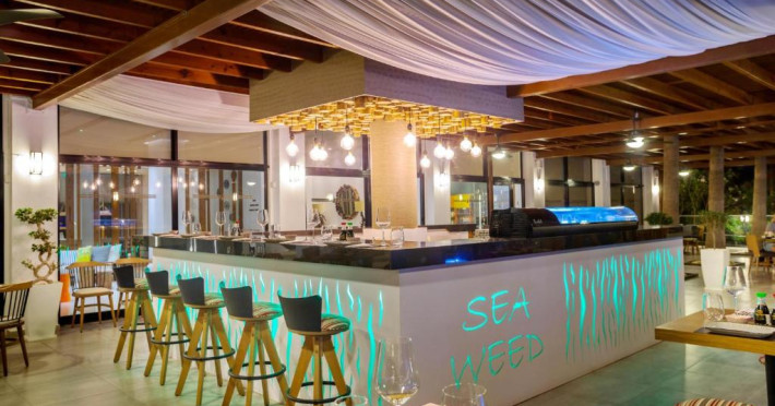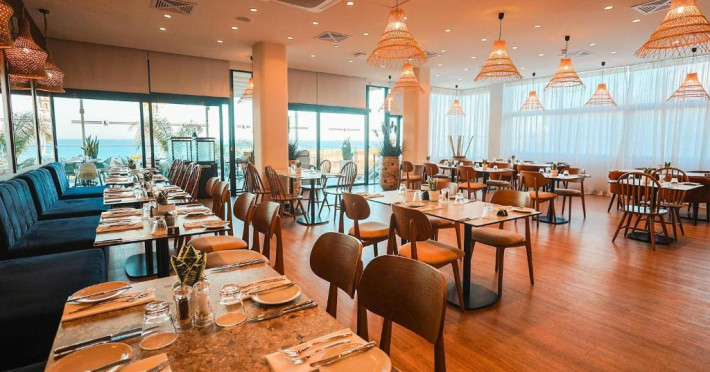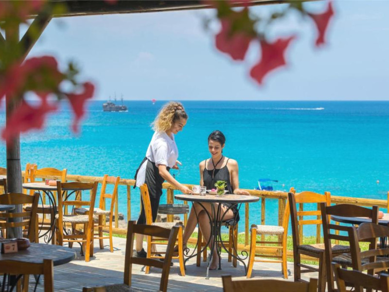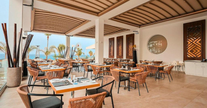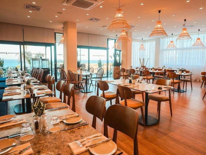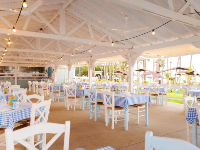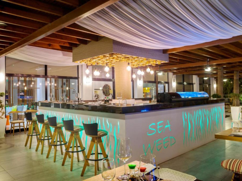 Restaurantul Alkion oferă preparate din bucătăria internațională, servite pe terasa hotelului cu vedere la mare. Oaspeții pot savura cocktailuri la barul Coral și gustări și băuturi la barul Sirena de la piscină.