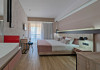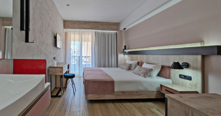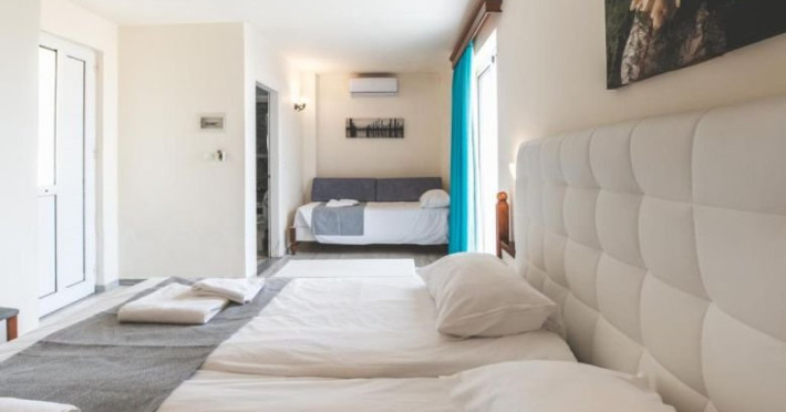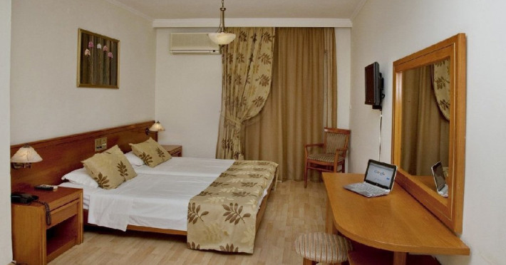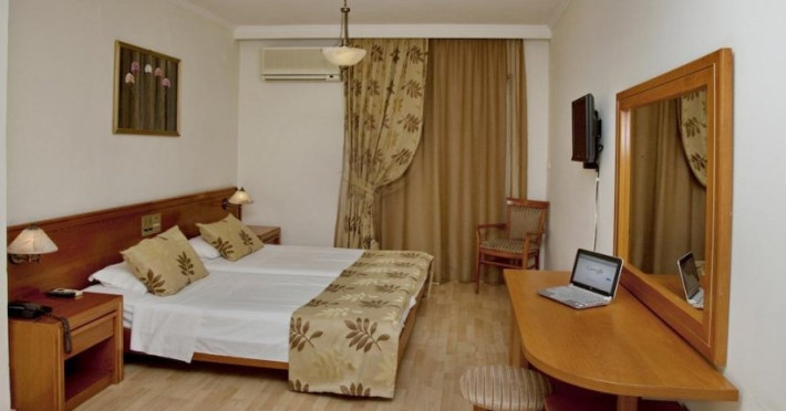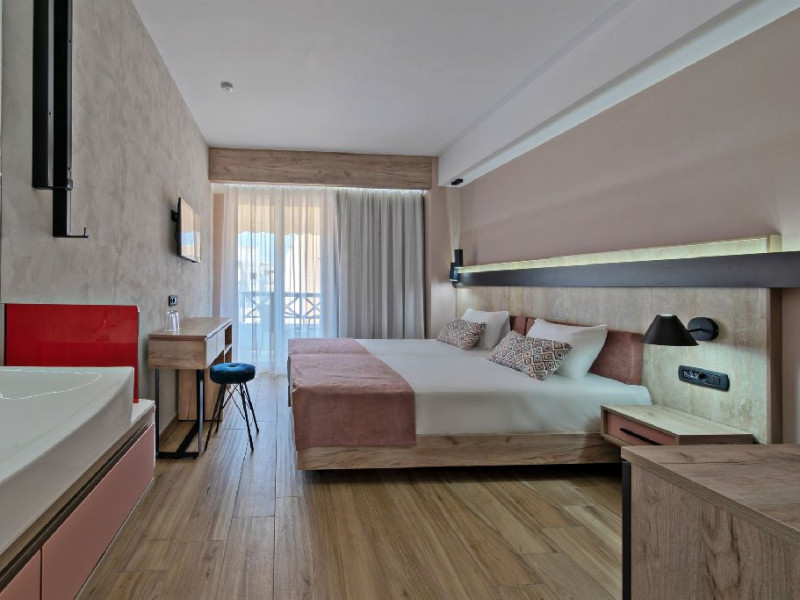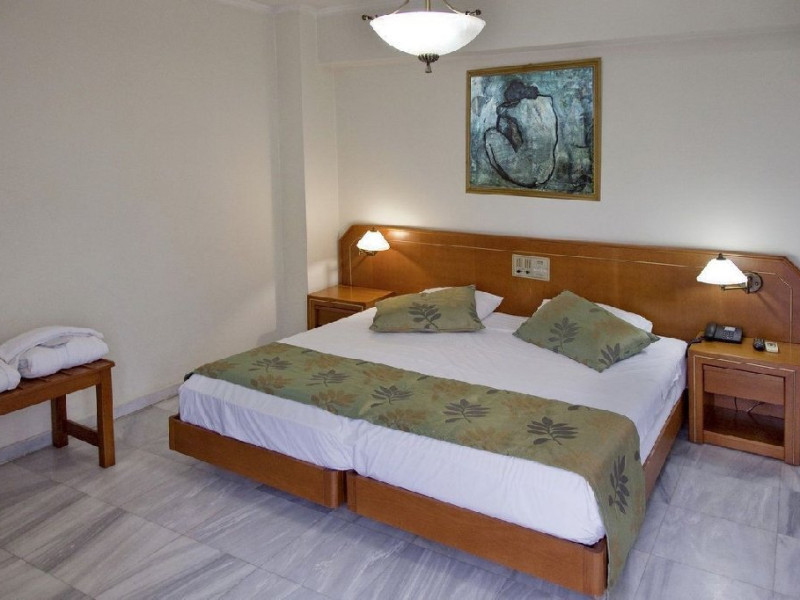 CAMERE Acest hotel este construit aproape de mare, intr-una dintre zonele cele mai pitoresti din Creta. Ofera camere elegante, cu balcoane cu vedere la gradina, mare sau la cele 3 piscine. Fiecare camera este decorata cu gust, cu mobilier din lemn si bai moderne. Toate unitatile de cazare sunt echipate cu aer conditionat, TV si articole de toaleta. Unele camere au zona de relaxare. Camera de familie (2 aduli + 2 copii) - pe 2 niveluri-(27 mp)-Cu o suprafaa de 32 m, aceste apartamente pe doua etaje ofera vedere la gradina i pot gazdui pana la 4 persoane. Camera dubla standard-(17 mp)-Aceste camere au vedere la gradina. Camera dubla superioara-(20 mp)-Aceste camere au vederi la mare sau la piscina. Camera de familie superioara-(30 mp)-Aceste camere spatioase au balcon. Camera dubla Deluxe cu piscina privata-(22 mp)-Aceasta camera dubla are balcon, podea cu gresie/marmura si piscina privata. Camera de familie Deluxe cu piscina privata-(45 mp)-Aceasta camera de familie are aer conditionat, fierbator electric si balcon. Camera tripla superioara-(22 mp)-Aceasta camera tripla are podea cu gresie/marmura, aer conditionat si balcon.