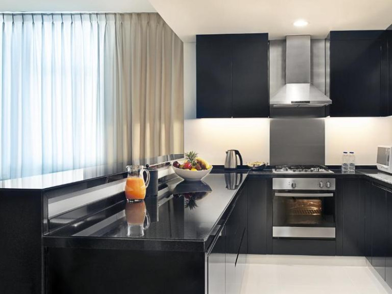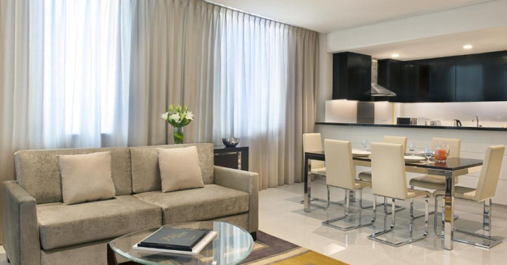 Toate unitățile de cazare sunt luminoase și spațioase și includ o zonă de living cu TV cu ecran plat cu canale prin satelit, un birou și o chicinetă/bucătărie completă utilată, cu mașină de spălat vase și mașină de spălat rufe. Baia privată are chiuvetă dublă, duș, cadă adancă și articole de toaletă Elemis gratuite.