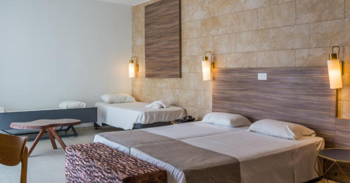 Camerele confortabile de la Electra Holiday Village Waterpark au pardoseală de gresie/ marmură, aer condiționat, Tv cu canale prin satelit și seif. Fiecare cameră dispune de mașină pentru preparare cafea sau ceai și fierbător În camere există baie cu cadă sau duș prevăzută cu foehn. Oaspeții au acces gratuit la serviciul Wi-fi în camere. Curățenia in cameră se face zilnic. Proprietatea oferă camere pentru familie cu o suprafață mai mare și un număr mai mare de paturi față de cele standard.