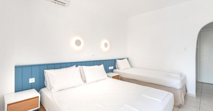Sunt disponibile 28 camere. Camerele confortabile de la Elektra sunt dotate cu pardoseală de gresie/ marmură, aer condiționat, Tv și seif. Oaspeții au la dispoziție serviciul de room service pentru a servi masa sau diverse băuturi. Unele camere au balcon cu vedere la mare sau la piscină. În camere există baie cu cadă sau duș ce are în dotare foehn și articole de toaletă gratuite. Oaspeții au acces gratuit la serviciul Wi-fi în camere. Curățenia in cameră se face zilnic. Fiecare unitate de cazare are frigider. Proprietatea oferă camere pentru familie cu o suprafață mai mare și un număr mai mare de paturi față de cele standard.