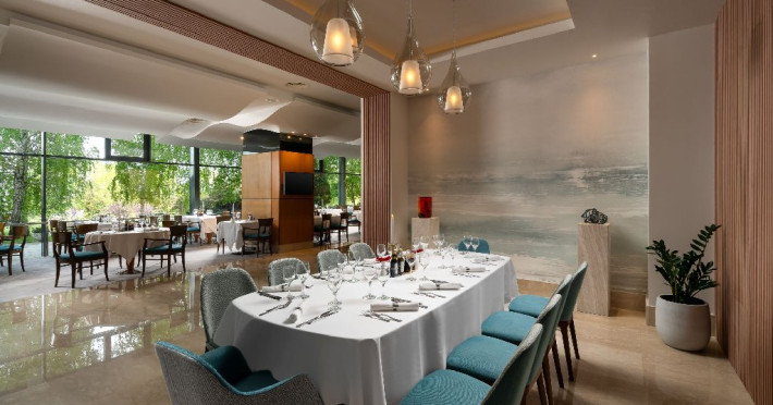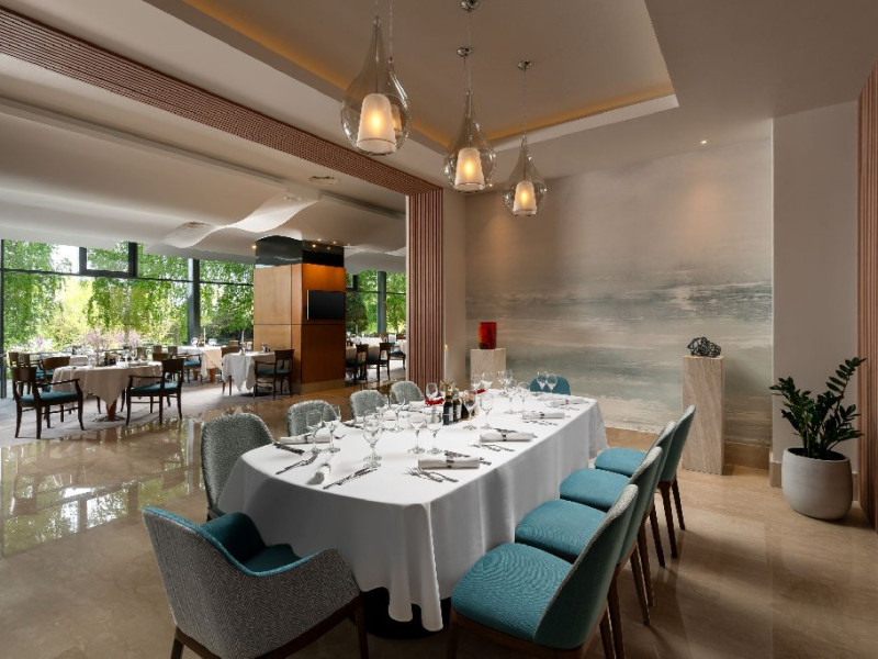 Hotelul pune la dispozitia oaspetilor restaurantul cu splendida sa terasa situata langa gradina si gastronomie autentica (cu preparate internationale si romanesti), 2 baruri(Lobby Bar-in interior si Pool Bar -la exterior), room service, gradina luxurianta unde te poti relaxa in hamace sau pe sezlonguri, 1 piscina cu apa dulce la exterior, Techirgiol Pool ( piscina cu apa sarata din lacul Techirghiol , la exterior), 1 piscina cu apa sarata din lacul Techirghiol la interior, jacuzzi, sauna uscata si sauna umeda, sala fitness, plaja administrata cu sezlonguri si umbrela, parcare la exterior si parcare subterana.