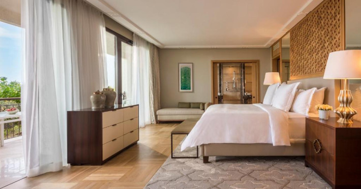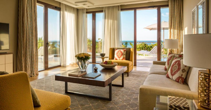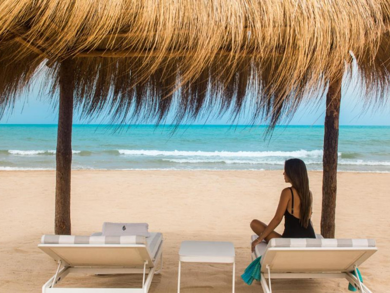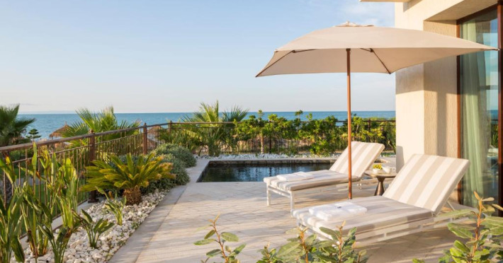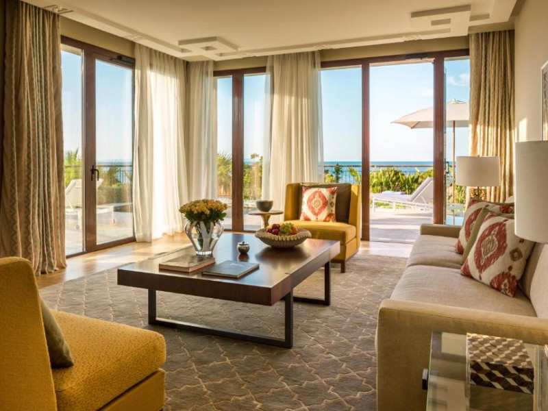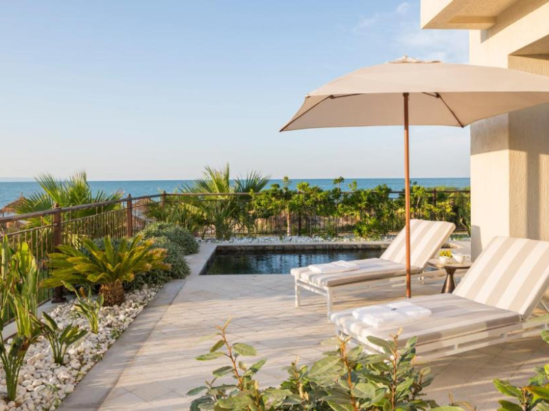 Plaja privată cu nisip fin se intinde chiar in fața hotelului, oferind oaspeților un cadru perfect pentru relaxare. Camerele și suitele spațioase beneficiază de balcoane cu vedere panoramică spre mare sau spre grădinile luxuriante.