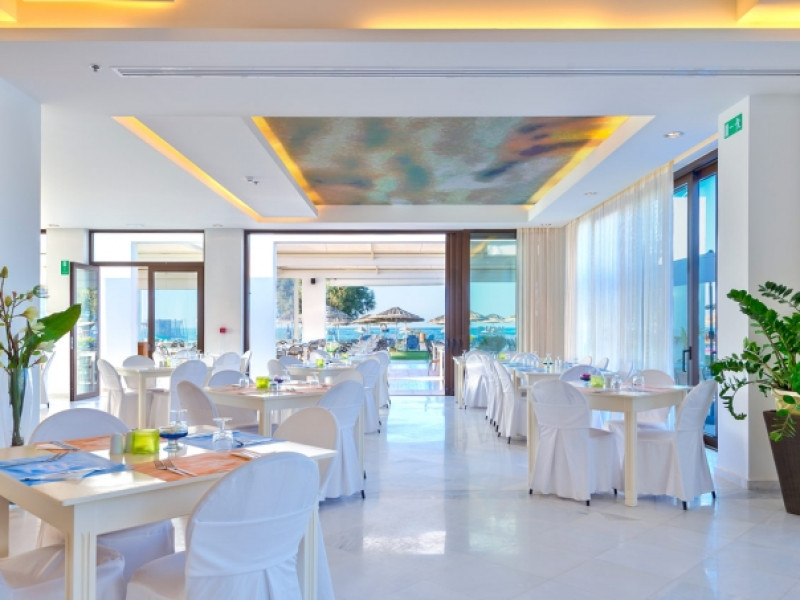 La Geraniotis Beach Hotel oaspeții au la dispoziție un restaurant care servește mâncare în stil bufet. Preparate din bucătăria internațională așteaptă să fie degustate în fiecare zi la micul dejun, prânz și cină. Masa poate fi servită atât în interior, cît si în aer liber, pe terasă, în funcție de vreme. Oaspeţii pot avea diverse băuturi răcoritoare sau alcoolice la bar.