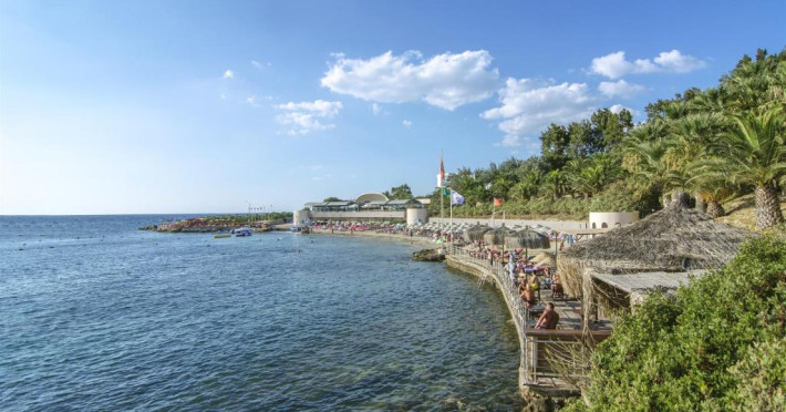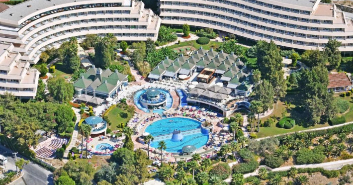 Facilitati hotel: Hotelul, care se intinde pe o suprafata de aproximativ 40.000 mp, ofera oaspetilor sai un restaurant principal, restaurant A la Carte cu specific Italian, pescaresc si turcesc, snack bar, baruri la piscina, in lobby si pe plaja, disco, servicii medicale, internet cafe, 2 mini cluburi, piscina exterioara, piscina pentru copii. Plaja hotelului este private, ingusta cu nisip si ofera sezlonguri si umbrelute. Pentru relaxare, hotelul ofera sauna, baie turceasca, sala de fitness, darts, billiard, 2 terenuri de tenis si ofera posibilitatea de practicare a sporturilor acvatice.