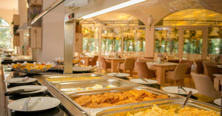 La Hacienda Beach oaspeții au la dispoziție 2 restaurante unde pot savura mâncăruri delicioase, în stil bufet sau à la carte. Preparate din bucătăria locală, internațională și mediteraneană așteaptă să fie degustate în fiecare zi la micul dejun, prânz și cină. Masa poate fi servită atât în interior, cît si în aer liber, pe terasă, în funcție de vreme. 2 baruri, dintre care unul la piscină, sunt disponibile cu o ofertă variată de băuturi răcoritoare și alcoolice. În cadrul proprietății există și un snack bar care servește băuturi și gustări. Hacienda Beach pune la dispoziție meniuri pentru diete speciale și o zonă de picnic.