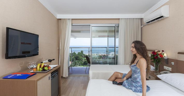 În camere există baie cu cadă sau duș ce are în dotare foehn și articole de toaletă gratuite. Fiecare cameră dispune de minibar. Camerele luminoase de la Hane Hotel sunt dotate cu parchet, aer condiționat, Tv cu canale prin satelit și seif. Unele camere au vedere la mare. Curățenia in cameră se face zilnic. Proprietatea oferă camere pentru familie cu o suprafață mai mare și un număr mai mare de paturi față de cele standard. Se pot rezerva de asemenea camere pentru nefumători.
