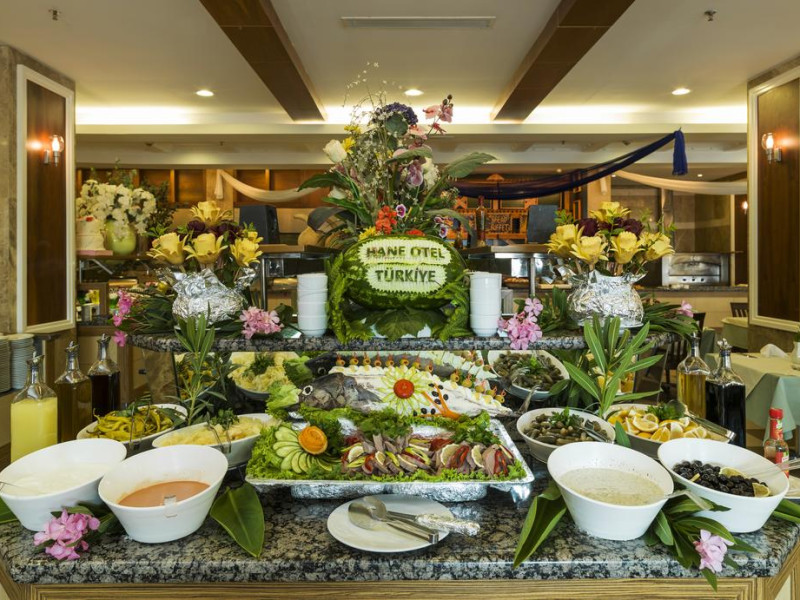 La Hane Hotel oaspeții au la dispoziție un restaurant care servește mâncare în stil bufet. Bucătăria turcească de la Hane Hotel propune preparate delicioase care satisfac gusturi diverse. Masa poate fi servită atât în interior, cît si în aer liber, pe terasă, în funcție de vreme. Oaspeţii pot avea diverse băuturi răcoritoare sau alcoolice la bar. În cadrul proprietății există și un snack bar care servește băuturi și gustări.