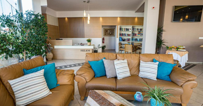 Camerele confortabile de la Helios Apartments sunt dotate cu pardoseală de gresie/ marmură, aer condiționat, Tv și seif. Fiecare cameră dispune de mașină pentru preparare cafea sau ceai și fierbător Oaspeții au acces gratuit la serviciul Wi-fi în camere. În camere există baie cu cadă sau duș ce are în dotare foehn și articole de toaletă gratuite. Unele camere au balcon cu vedere la piscină. Fiecare unitate de cazare include o chicinetă utilată cu frigider, plită de gătit și ustensile de bucătărie. Proprietatea oferă camere pentru familie cu o suprafață mai mare și un număr mai mare de paturi față de cele standard.