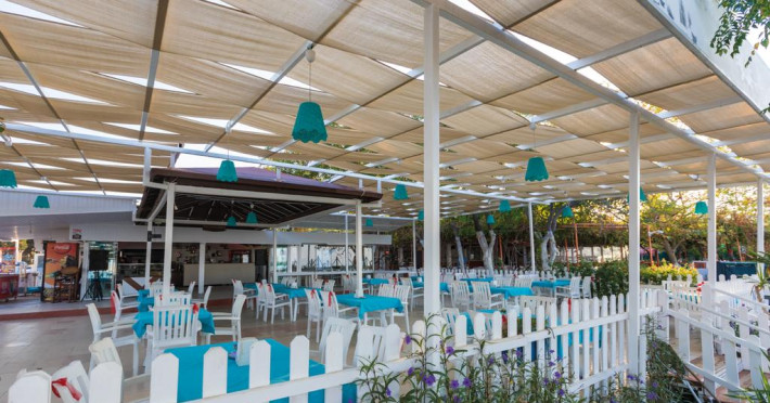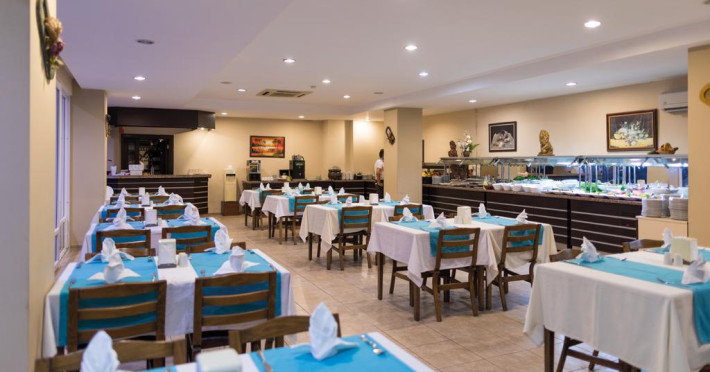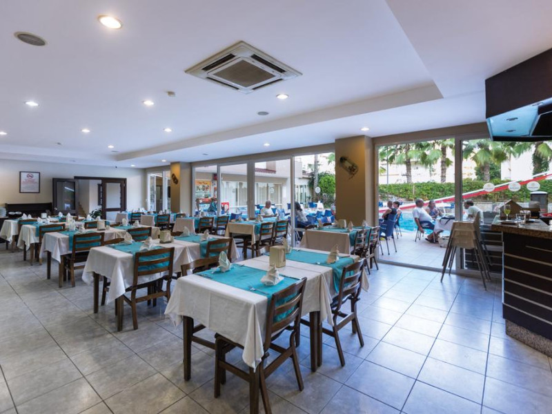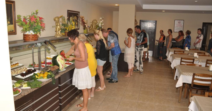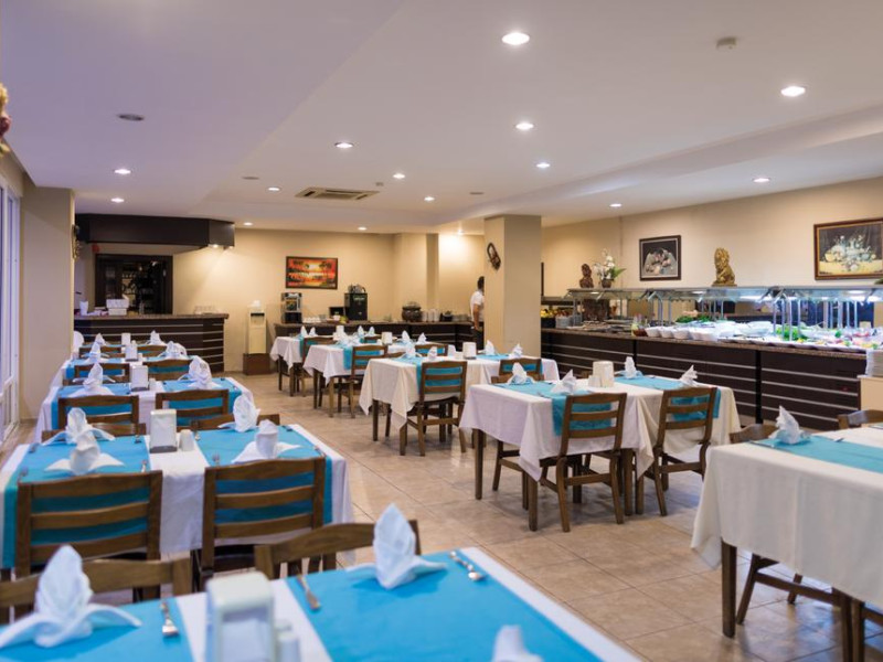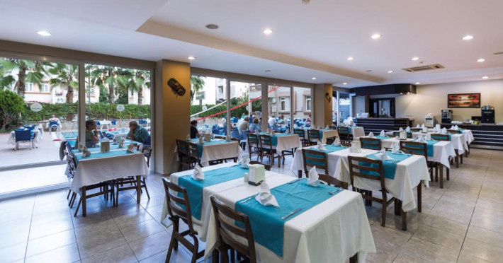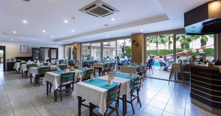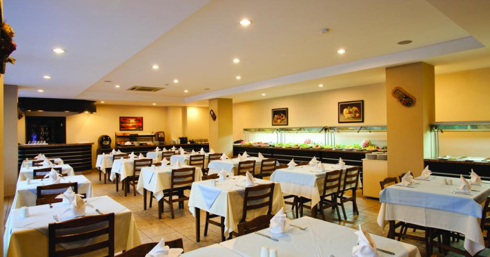 La Helios Hotel oaspeții au la dispoziție un restaurant care servește mâncare în stil bufet. Preparate din bucătăria internațională și turcească așteaptă să fie degustate în fiecare zi la micul dejun, prânz și cină. Masa poate fi servită atât în interior, cît si în aer liber, pe terasă, în funcție de vreme. Oaspeţii pot avea diverse băuturi răcoritoare sau alcoolice la bar. În cadrul proprietății există și un snack bar care servește băuturi și gustări.