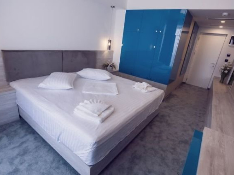 DESCRIERE CAMERE Numar total camere: 79 Camere Duble cu Vedere Frontala la Mare: 49 Camere Duble cu Vedere Laterala la Mare: 26 Apartamente cu Vedere Laterala la Mare: 3 Apartament Deluxe cu Vedere latrala la Mare: 1 Camerele duble sunt dotate cu pat matrimonal 180x200 cm. Apartamentele sunt compuse din living cu o canapea extensibila si baie cu dus si un dormitor cu pat matrimonial si baie cu dus. Livingul si dormitorul au o usa despartioare. Dotari Camere: clima, minibar, TV, balcon, papuci, halat de baie, uscator de par, baie cu dus, Wi fi. LOCALIZARE Hotel Alexandra este pozitionat pe plaja, chiar pe faleza din statiune. Beneficiaza astfel de o localizare excelenta, la doar 20 de metri de plaja si la cateva minute de mers pe jos de zona centrala a statiunii Mamaia. POLITICI Check-in: 16:00, Check-out: 12:00 Nu se accepta animale de companie.