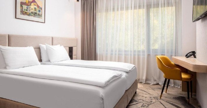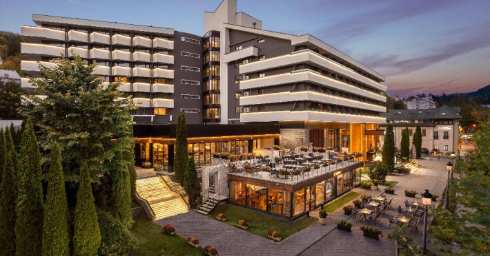 INFORMATII GENERALE Hotel Alexandrion Experience - fost Hotel New Montana este situat in centrul orasului Sinaia foarte aproape de cele mai importante atractii ale statiunii, fiind alegerea perfecta atat pentru cei care doresc o escapada romantica, pentru familiile cu copii sau pentru oamenii de afaceri. DESCRIERE UNITATE DE CAZARE Hotelul Alexandrion Experience nu este doar un simplu loc de cazare, ci o destinatie completa, perfecta pentru a trai momente speciale si a te bucura de o experienta cu adevarat memorabila. FACILITATI UNITATE Hotelul dispune de parcare (contra cost), trei restaurante cu specific romanesc, italian si japonez, sali de conferinte si piscina interioara. DESCRIERE CAMERE Camerele single si junior suite single pot fi folosite doar in regim single si nu au balcon. Camerele deluxe fara balcon au vedere spre munte, iar cele cu balcon au vedere spre centrul orasului Sinaia. Princess Suite si Duke Suite dispun de dormitor si living cu canapea neextensibila. Doar Princess Suite ofera balcon. Camerele ofera urmatoarele facilitati: cana fierbator, ceai si cafea, baie cu dus/cada, seif, telefon, halat de baie si papuci (pentru adulti), masa de lucru, uscator de par, cosmetice, uscator de prosoape. LOCALIZARE Hotel Alexandrion fost Hotel New Montana se afla in centrul statiunii, la aproximativ 300 m de Castelul Stirbey, accesul fiind foarte facil din DN 1. ATRACTII TURISTICE Castelul Peles, Castelul Pelisor, Castelul Stirbey, Manastirea Sinaia, Cazinoul Sinaia, Casa Memoriala George Enescu. POLITICI Nu se accepta animale de companie. SERVICII DE MASA De la mancaruri italiene autentice pana la delicii romanesti si preparate aromate din bucataria japoneza, restaurantele hotelului ofera un trio de experiente gastronomice. Restaurant Suman - specific romanesc Restaurant Del Chiaro - specific italian Restaurant Benihana - specific japonez FACILITATI COPII Copiii mai mari de 6 ani se pot caza in suite. FACILITATI EVENIMENTE Hotelul Hotel Alexandrion fost Hotel New Montana pune la dispozitia celor care calatoresc in interes de afaceri trei sali de conferinte: -Sala Carpathian 250 locuri teatru; -Sala Reihn 80 locuri teatru; -Sala Brincoveanu 40 locuri teatru.
