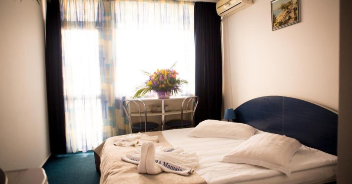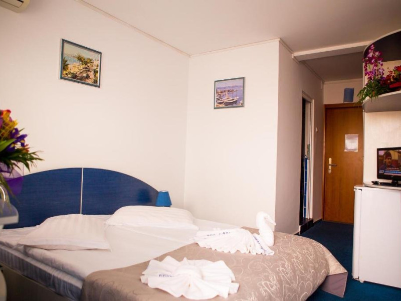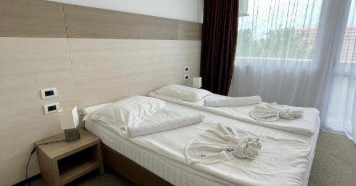 DESCRIERE CAMERE Numar total camere: 339 Duble: 339 Dotari camere: aer conditionat, TV, frigider, baie cu dus, balcon, acces pe baza de cartela magnetica, mocheta. Suprafata camerei este de cca 16mp, baia inclusa. LOCALIZARE Hotelul Aurora**+ din Mamaia este amplasat in sudul statiunii, la 25 de metri de plaja si cativa pasi de parcul Aqua Magic. Plaja: larga, nisipoasa, cu intrare lina in mare.