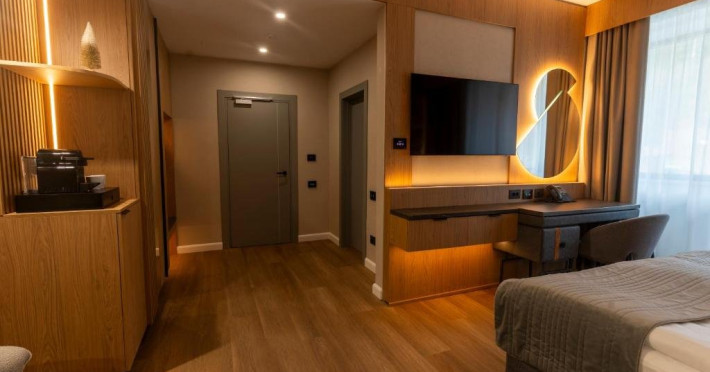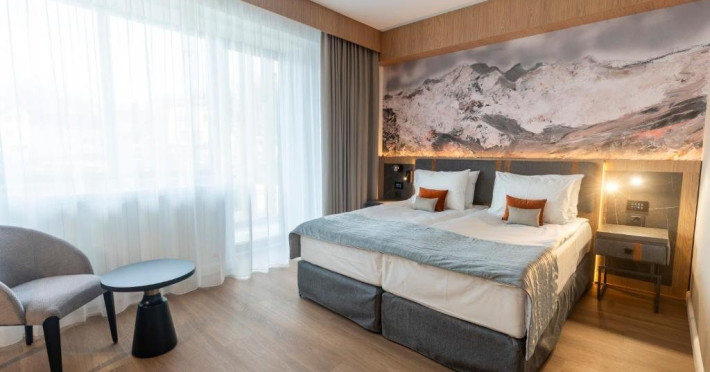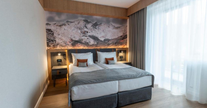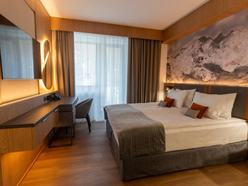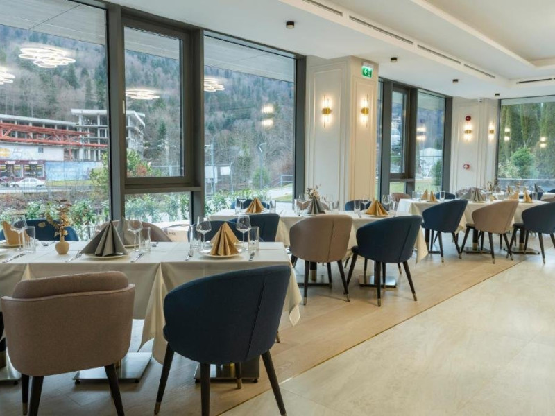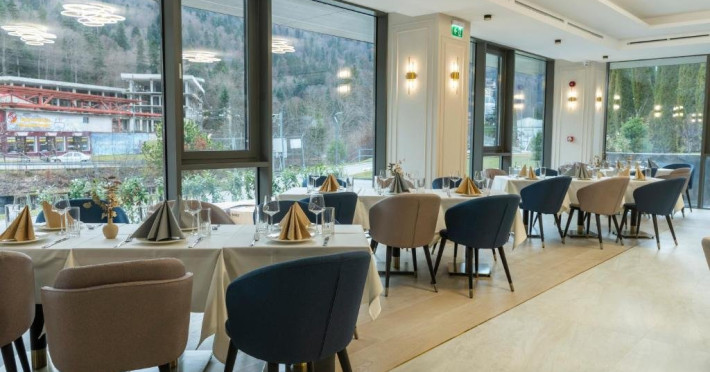 INFORMATII GENERALE Azuga Ski Bike Resort se afla la baza partiei Sorica in statiunea Azuga fiind locatia potrivita atat pentru turistii dornici sa se relaxeze cat si pentru oamenii de afaceri. FACILITATI UNITATE Hotelul dispune de parcare, restaurant, sauna, salina si masaj, sala de fitness, teren de sport exterior, sala de conferinte. Telegondola Azuga a fost pusa in functiune in decembrie 2007 si asigura transportul turistilor de la baza partiilor Sorica pe culmea Sorica la o altitudine de 1540 m. Aceasta se adreseaza in principal skiorilor si amatorilor de mountain bike. DESCRIERE CAMERE Camerele duble dispun de pat matrimonial sau doua paturi twin. Camerele ofera o privire panoramica spre Muntii Bucegi si Muntii Baiului. Toate camerele sunt dotate cu: baie proprie, acces internet, TV satelit, linie telefonica interna. LOCALIZARE Hotelul este situat pe Valea Prahovei la baza partiei Sorica, la 2 km de DN 1, la 50 m de partia de schi si la 100 m de telegondola. ATRACTII TURISTICE Partia Sorica, Partia Cazacu, Castelul Cantacuzino, Parc Ecaterina Teodoroiu, Casa memoriala George Enescu. La aproximativ 10 km se afla Castelul Peles si Castelul Pelisor. POLITICI Nu se accepta animale de companie. SERVICII DE MASA Restaurantul hotelului are o capacitate de 100 locuri si pune la dispozitia turistilor preparate internationale. FACILITATI EVENIMENTE Hotelul dispune de doua sali de conferinta.