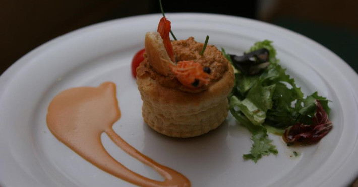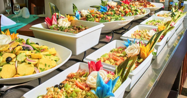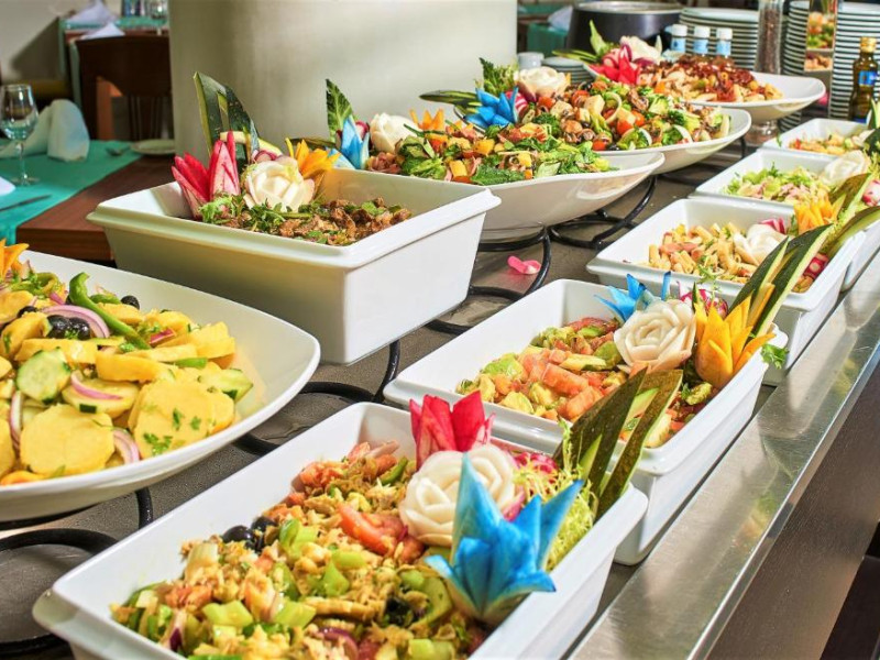 Proprietatea servește micul dejun tip bufet in fiecare dimineață. Hotelul Baia Grande are restaurant și bar cu pian. In timpul verii, oaspeții pot opta pentru muzică folk și grătar aproape de zonă.