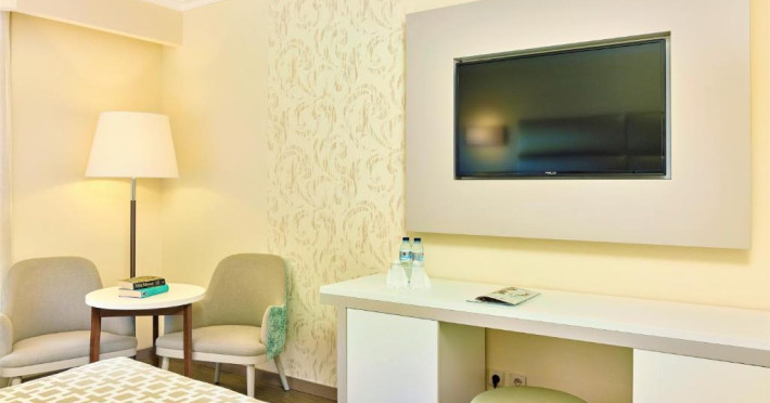 Camerele Hotelului Baia Grande au aer, decor in culori neutre și balcon. Toate camerele sunt dotate cu TV cu ecran plat cu canale prin satelit și minibar. Unele unități de cazare oferă vedere frumoasă.