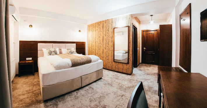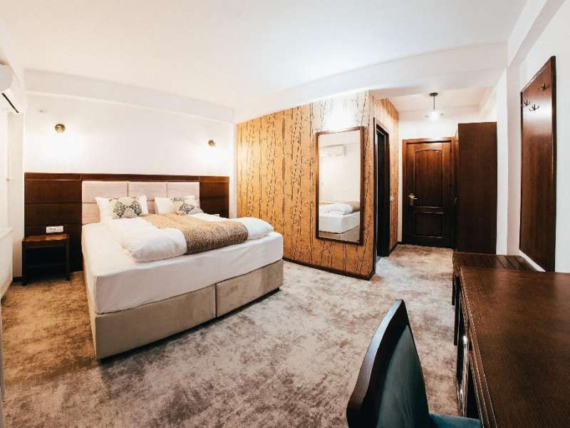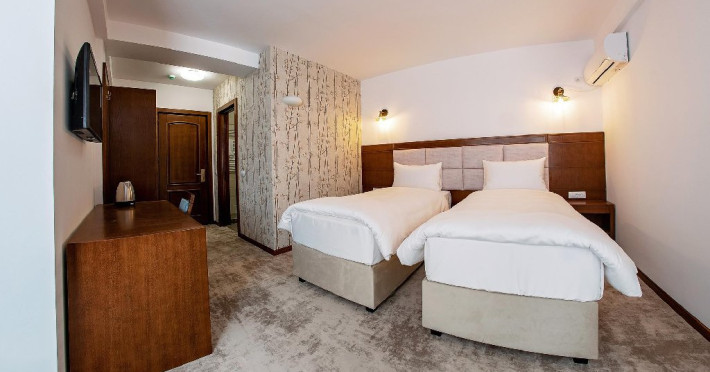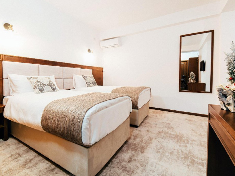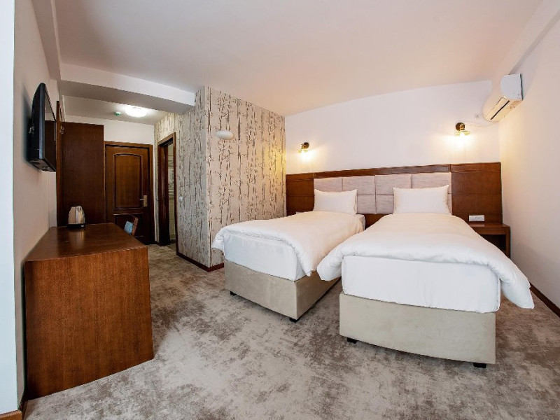 DESCRIERE CAMERE Hotelul dispune de 20 de camere, cu capacitatea maxima de cazare a 44 de persoane. 8 Camere duble matrimoniale cu balcon 4 Camere duble matrimoniale fara balcon 2 Camere triple cu balcon 2 Camere duble twin cu balcon 2 Camere twin fara balcon 2 Camera tripla Family twin fara balcon