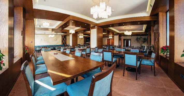 SERVICII MASA Micul dejun, pranzul si cina se servesc in regim a la carte in restautantul hotelului care dispune de 120 de locuri pentru servirea mesei sau pe terasa hotelului care are capacitatea de 40 locuri.