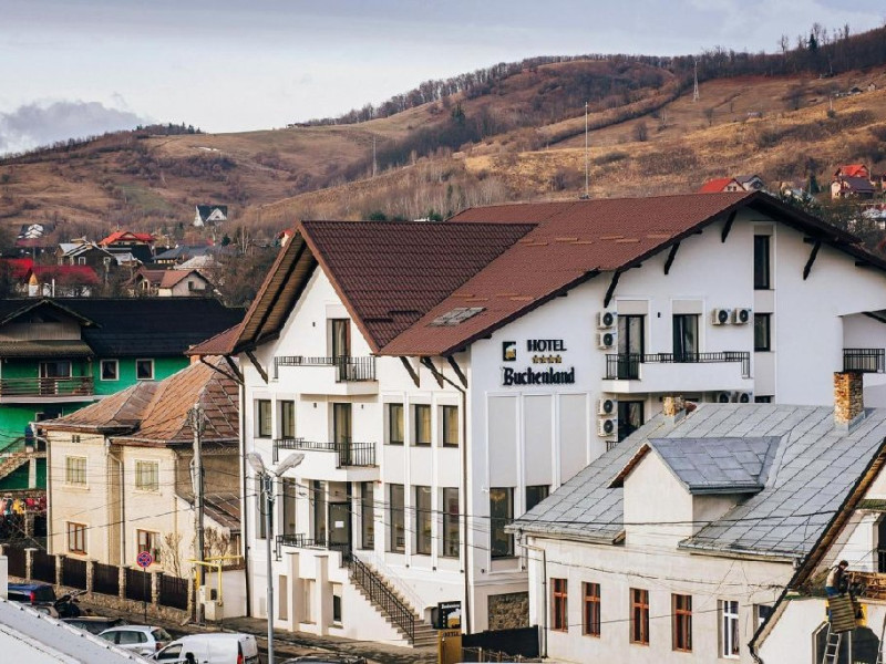 FACILITATI UNITATE Hotel Buchenland pune la dispozitia oaspetilor sai 20 de camere duble si triple, un restaurant international/traditional (120 locuri), terasa (40 locuri), un bar, o sala de conferinte (35 locuri).