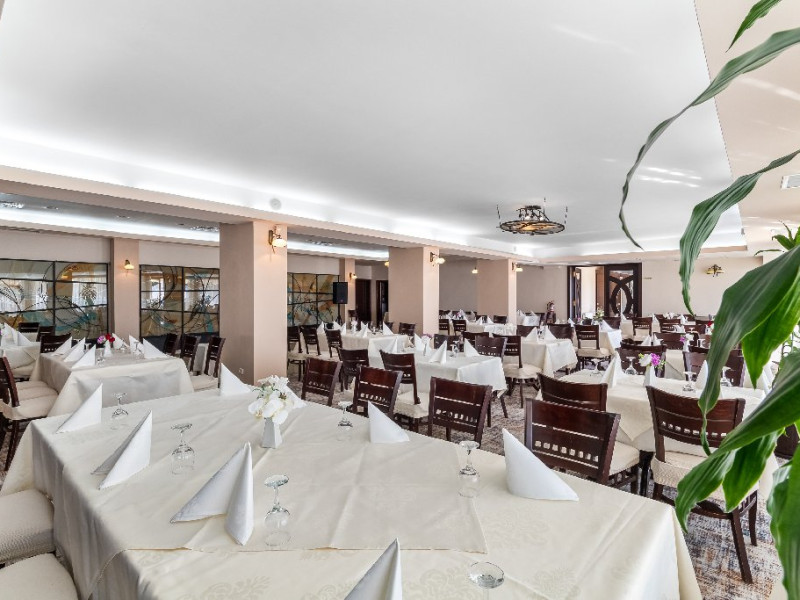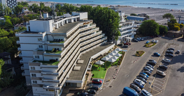 LOCALIZARE Hotelul este situat in partea centrala a statiunii, langa Casino Mamaia si barul Melody, la cca. 50 m de plaja si 50 m de lacul Siutghiol. Plaja: larga, nisipoasa si intrare lina in mare. SERVICII MASA Se acorda in unitatea restaurant Condor, categoria 4 stele: mic dejun si cina in sistem bufet suedez. Cina se poate servi in intervalul 03.07- 06.09.