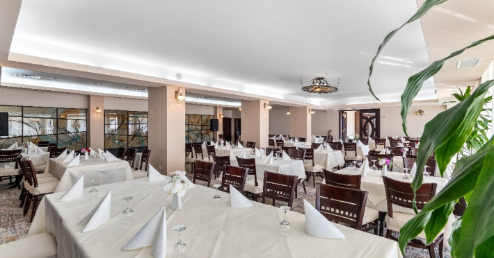 FACILITATI EVENIMENTE Sali de conferinta: 1 - o sala cu capacitate de aproximativ 70 de persoane, dotata cu: aer conditionat, sonorizare, ecran, acces internet, videoproiector, pupitru.
