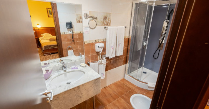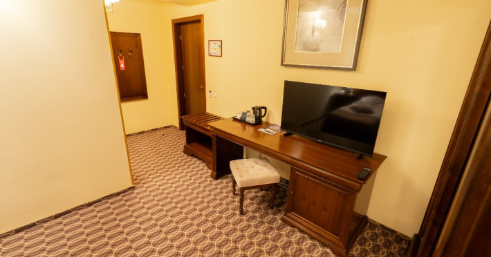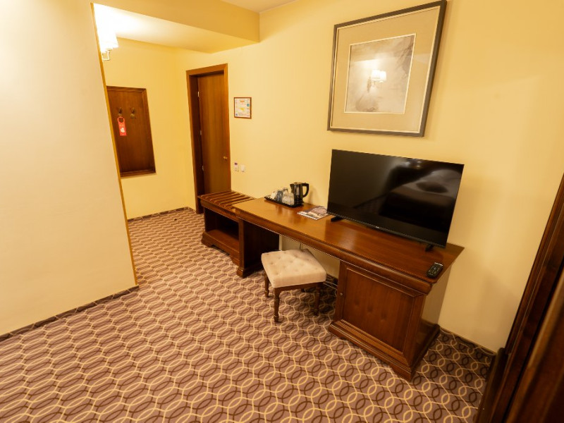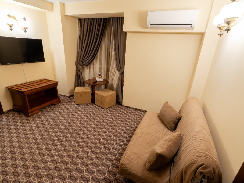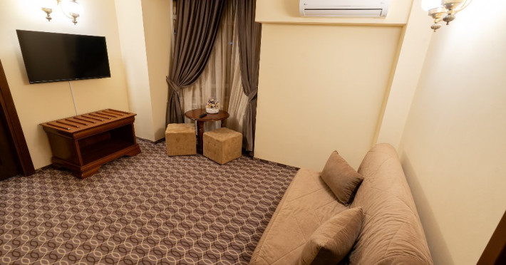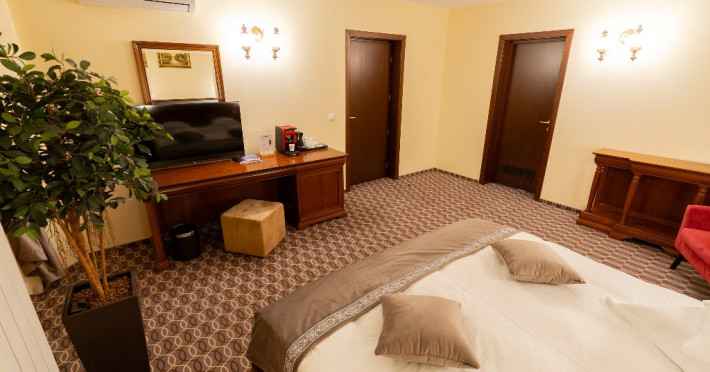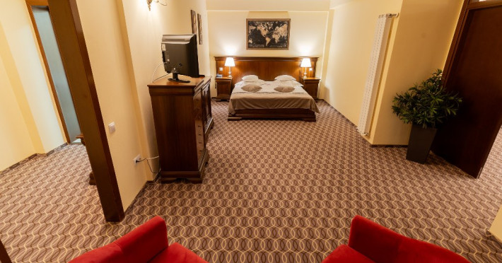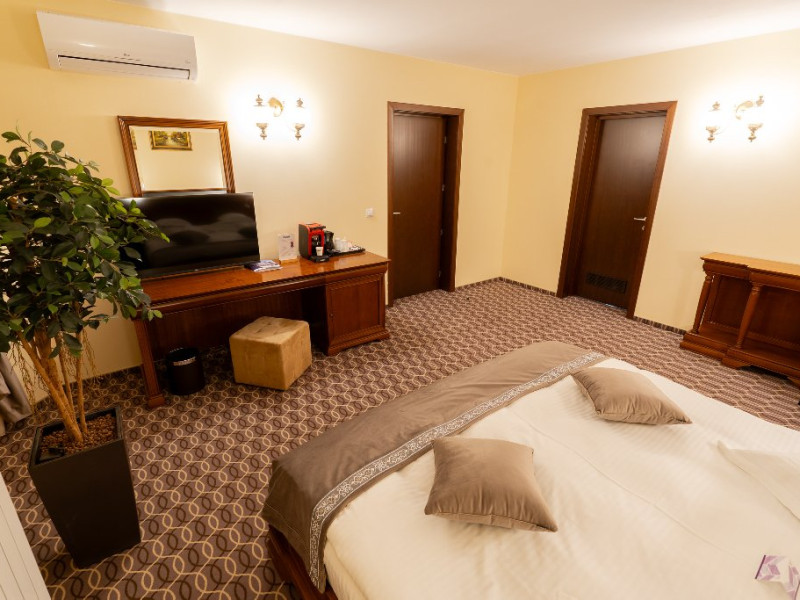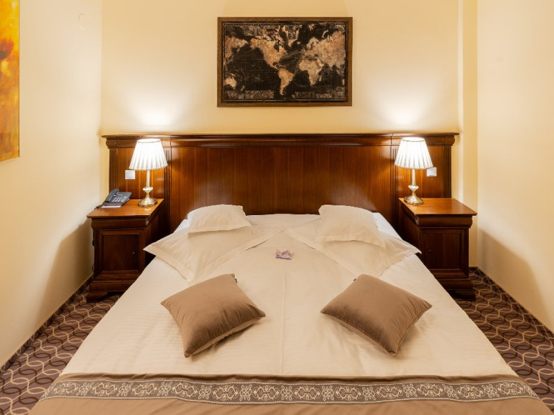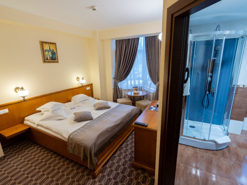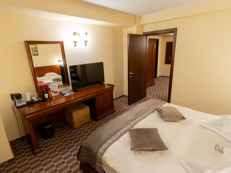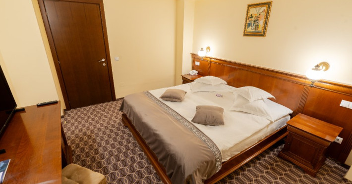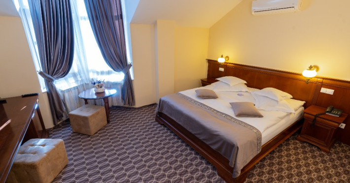 Camera dubla superior cu pat matrimonial. Suprafata acestor tipuri de camere variaza de la 18 metri patrati pana la 21 mp.