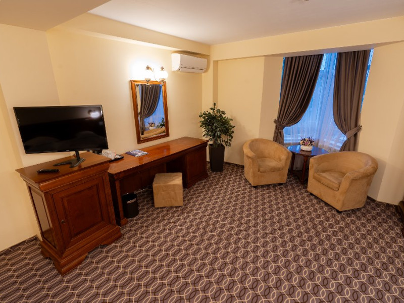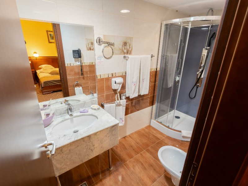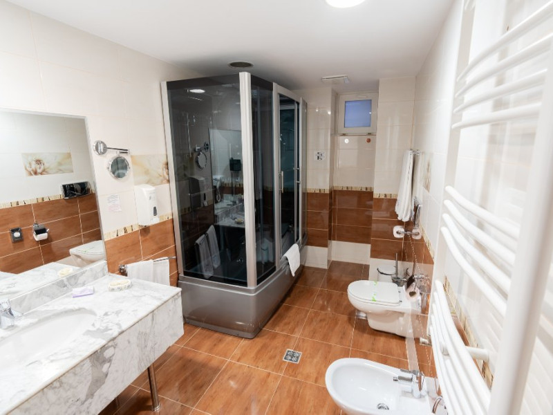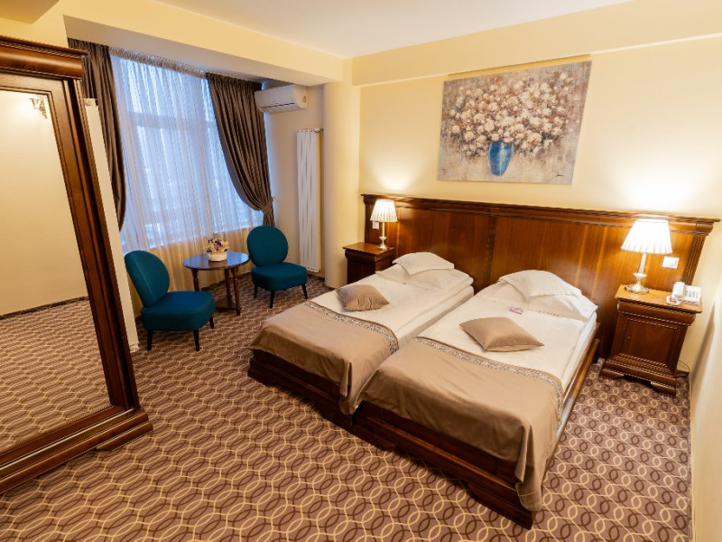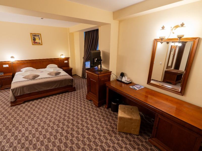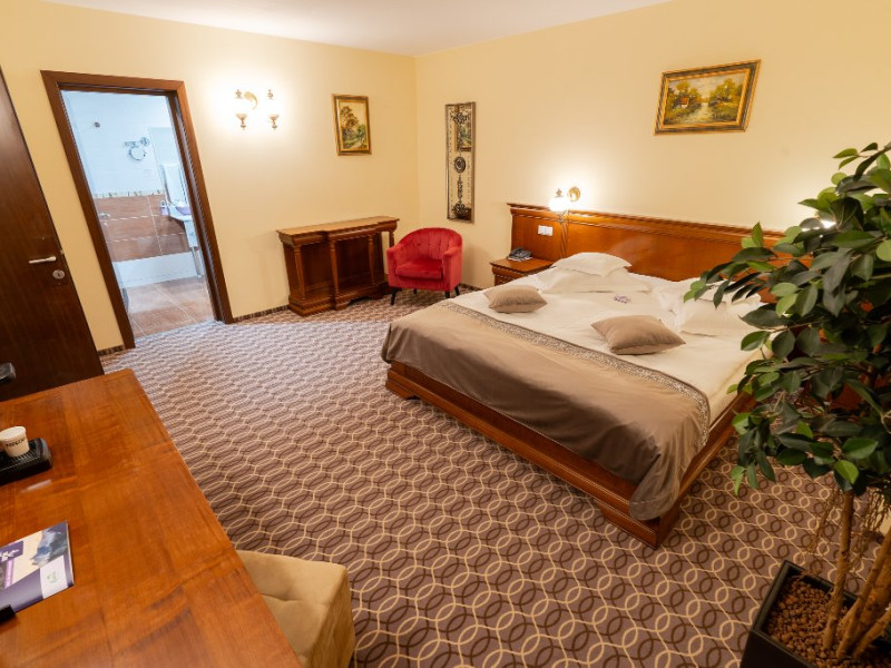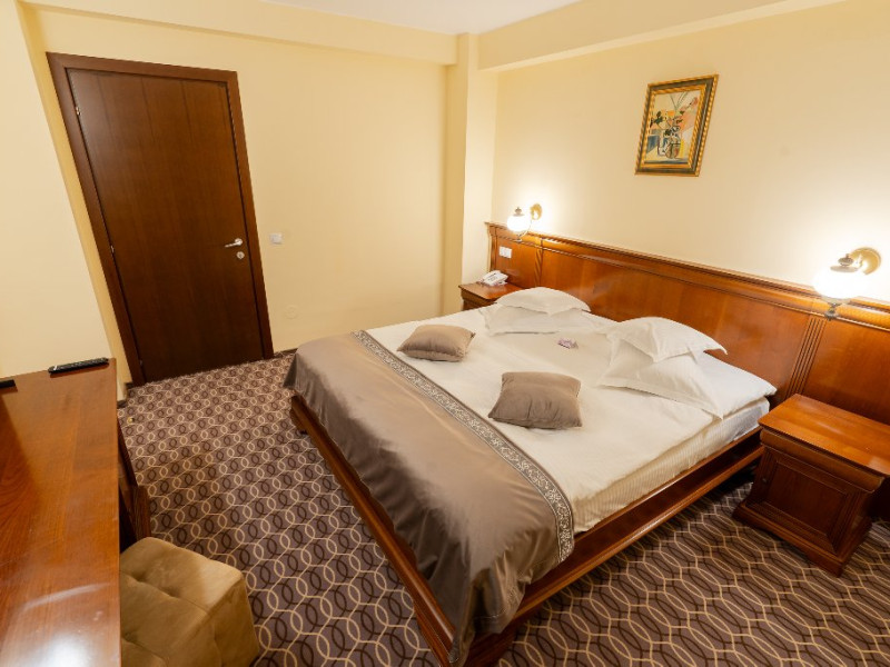 Tratament si relaxare - Mic dejun Include: cazare cu mic dejun, consultatie medicala gratuita, pachet de tratament standard (1 baie cu apa minerala/adult/zi, 2 proceduri electroterapie/adult/zi - Duminica nu se face tratament), acces la centrul Spa: piscina interioara, sauna uscata, sauna umeda, sala fitness, sauna salina, internet. Turistii trebuie sa prezinte adeverinta de la medicul de familie cu mentiunea apt pentru tratament balnear. Pachetul de proceduri nu poate fi schimbat cu alte servicii hoteliere. La receptia hotelului, turistii vor achita taxa hoteliera, stabilita de administratia locala in valoare de: 2 Lei/adulti/zi, 1 Lei/copii cu varsta peste 6 ani, studenti, pensionari/zi si taxa salvamont 5 Lei /persoana/sejur.