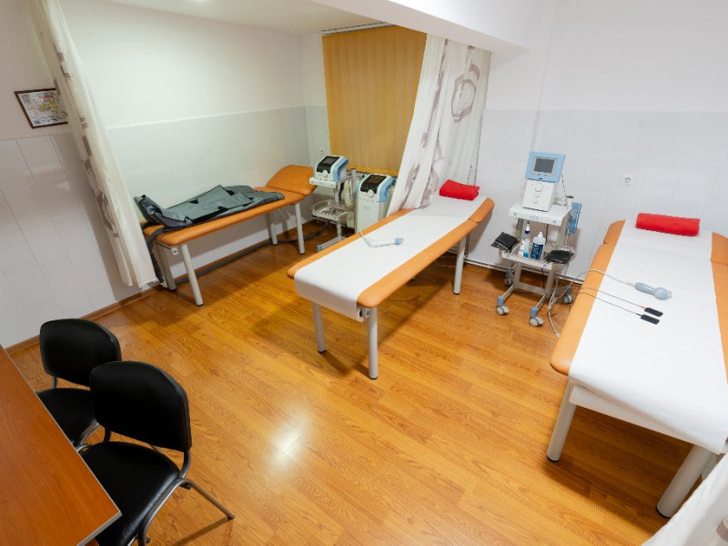 Proceduri: electroterapie, socterapie, magnetoterapie, laser, masaj, gimnastica medicala. Procedurile bai carbogazoase (naturale), bai de plante, parafina sunt inacesibile pana la noi reglementari legislative.