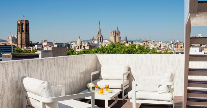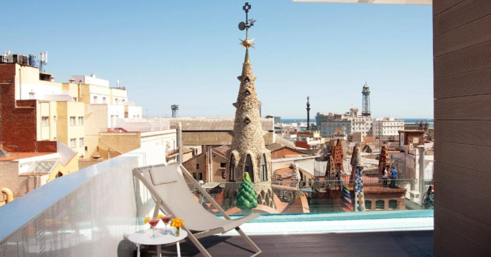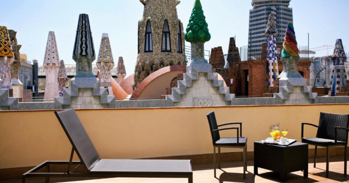 La doar 50 de metri de faimosul bulevard Las Ramblas din Barcelona, Hotelul Gaudi are o terasă pe acoperiș cu vedere la Palau Güell și la oraș. Este disponibil acces gratuit la internet WiFi.