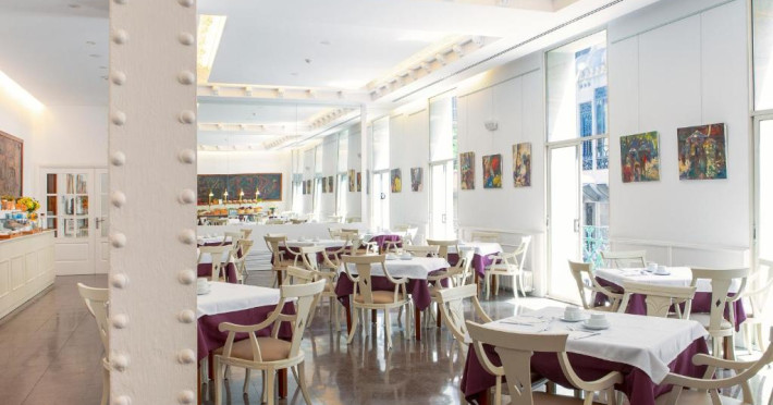 Restaurantul Hotelului Gaudi servește mic dejun tip bufet american. Există, de asemenea, un bar.