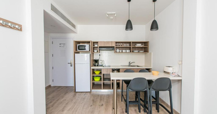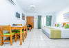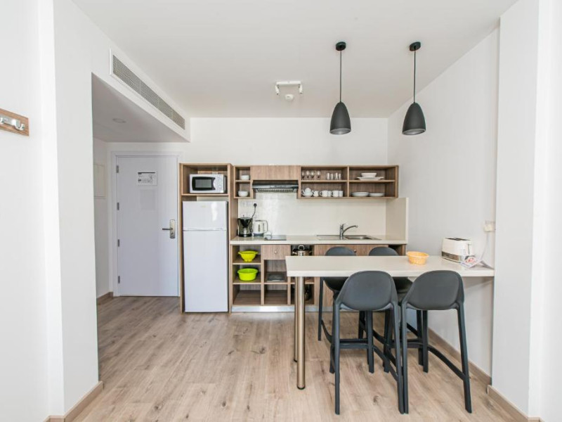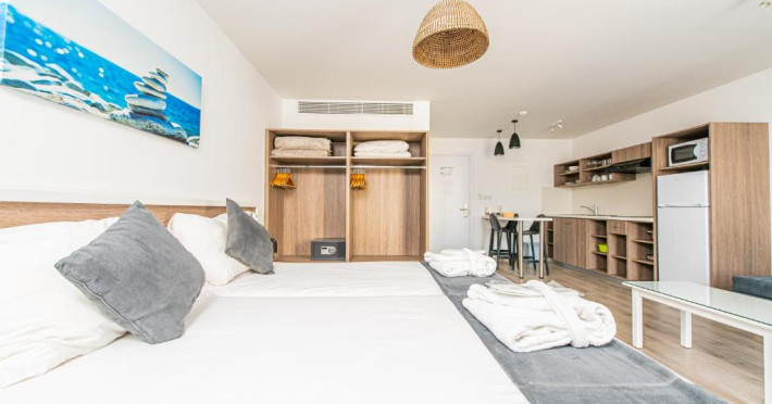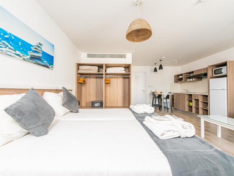 Cazare confortabilă: Aparthotelul oferă apartamente cu aer condiționat, chicinete, băi private și facilități moderne. Fiecare unitate include un balcon cu vedere la grădină, piscină sau munte, asigurand un sejur confortabil.