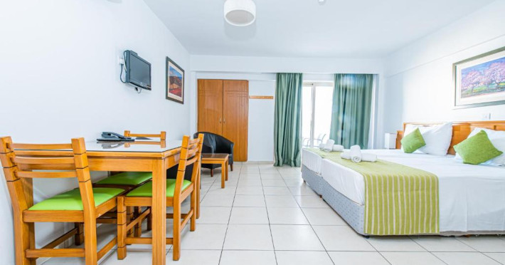 Locație pe malul mării: Golden Star Beach din Protaras oferă acces direct la malul mării, o grădină luxuriantă și o terasă spațioasă. Oaspeții se pot relaxa langă piscina sezonieră in aer liber sau se pot bucura de soare pe balcon.