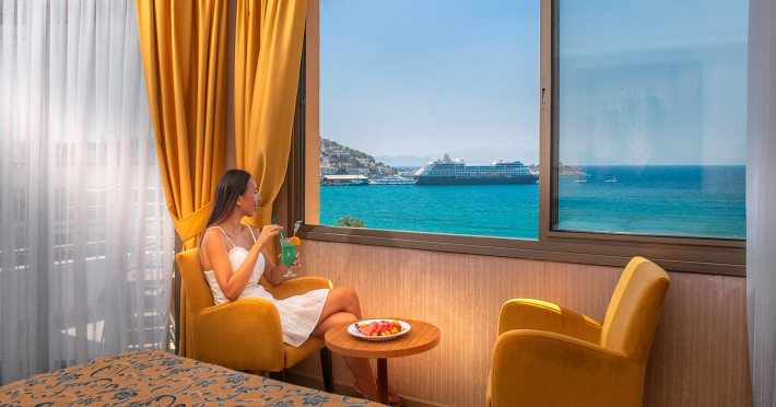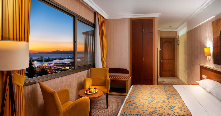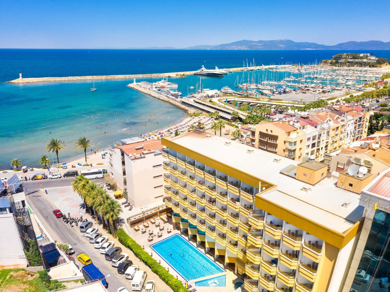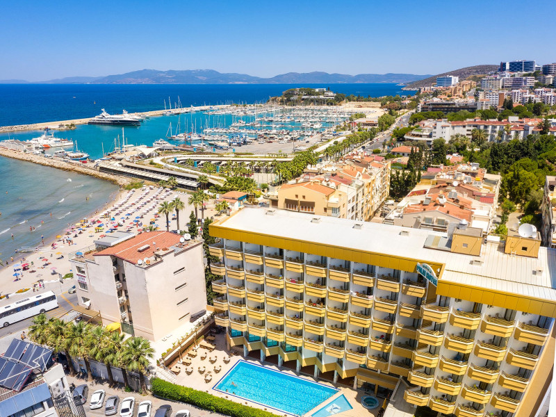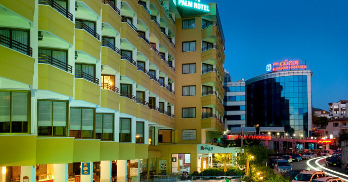 Hotelul Palm este un hotel de lux situat in Kușadası, langă portul de iahturi. Acesta oferă vedere la Marea Egee și la Marina Kușadası. Hotelul se află la doar 5 minute de mers pe jos de magazinele și zonele de divertisment din Kușadası. Aeroportul Internațional Adnan Menderes din Izmir este la 70 km. Nu vă veți simți niciodată atat de aproape de istorie; Efesul este la 20 km distanță, iar Didyma, Milet și Priene sunt la 45 km distanță.