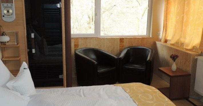 DESCRIERE UNITATE DE CAZARE: Agrementul este asigurat de spatiile de agrement si jocuri din incinta hotelului si in afara lui. Tratament si SPA, in incinta hotelului se afla baza de tratament, unde se pot efectua proceduri balneare, tot in incinta hotelului se afla un centru SPA modern cu sauna, jacuzzi, piscina cu apa mezotermala, sala fitness. Receptie, accesul la nivelele superioare ale hotelului se realizeaza prin intermediul liftului, receptia hotelului dispune de telefon, fax, xerox, internet wireless, informatii servicii cu plata si fara plata din cadrul hotelului informatii transport, spalatorie, seif.