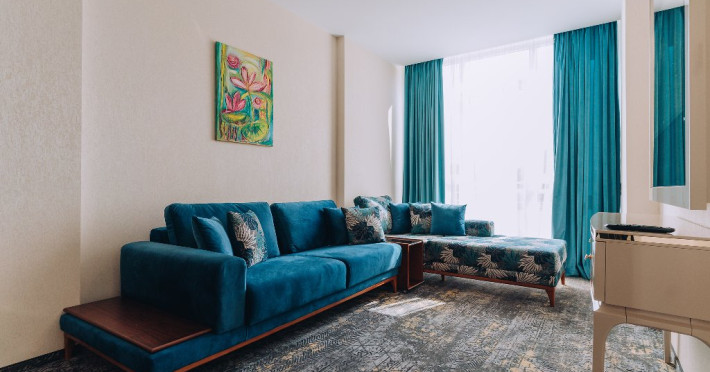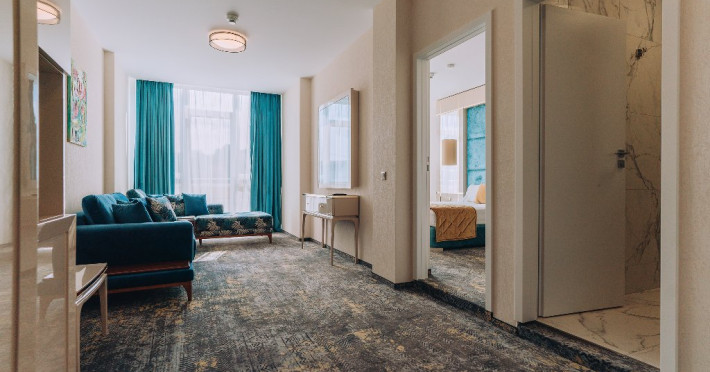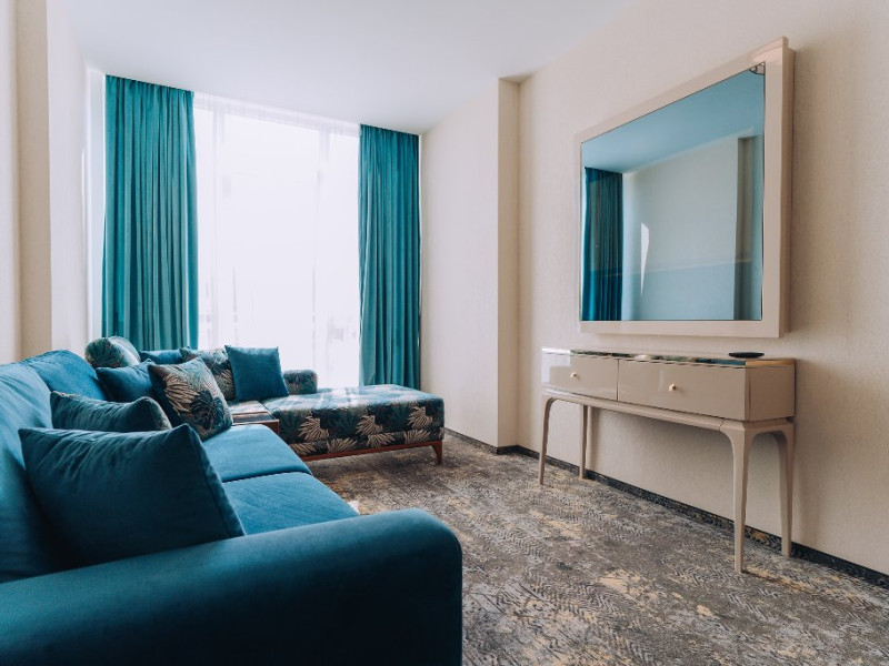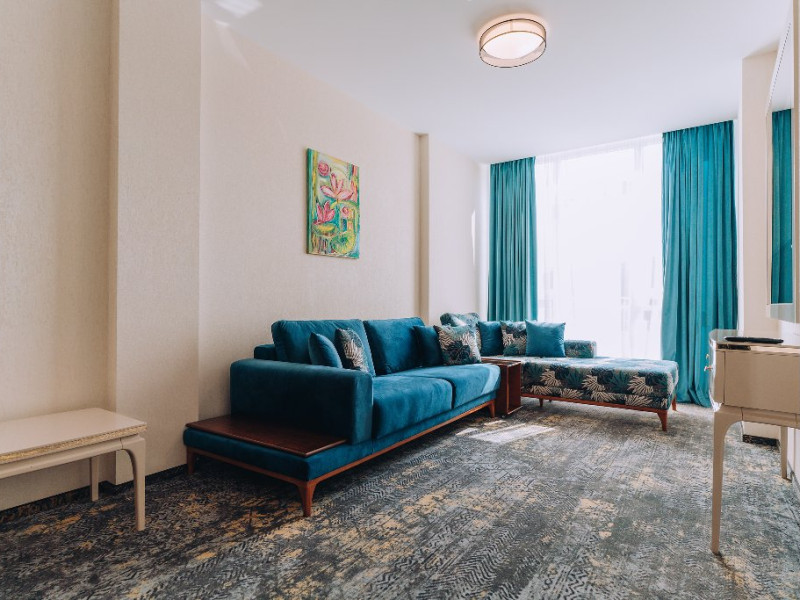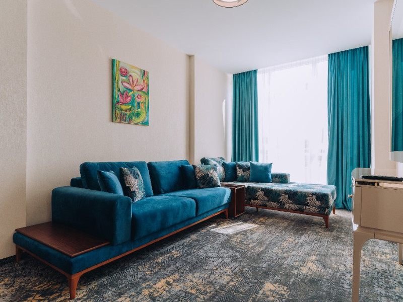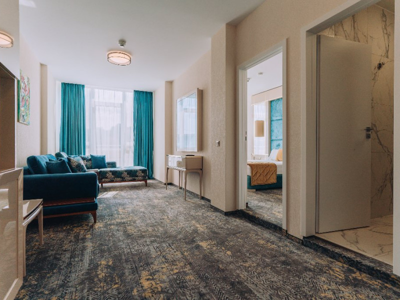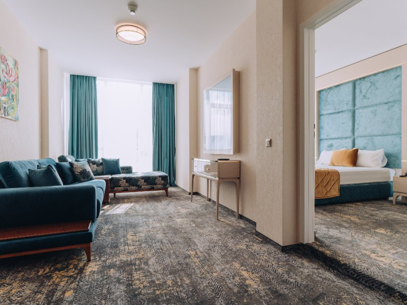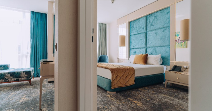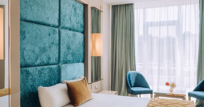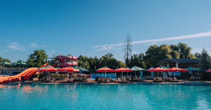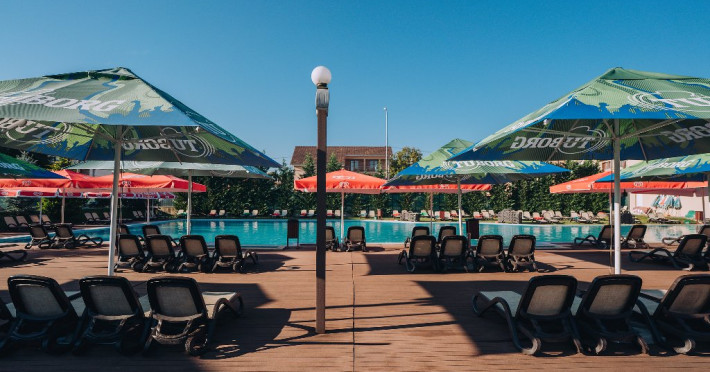 DESCRIERE UNITATE DE CAZARE: La dispozitia turistilor sunt 4 bazine exterioare, 6 bazine interioare, 3 tipuri de sauna, 13 tipuri de tratamente de recuperare, 2 terase, restaurant si lobby bar, 2 sali de conferinta, 1 sala de fitness, teren de fotbal, centru de wellness si SPA. o statie de incarcare pentru auto electrice.