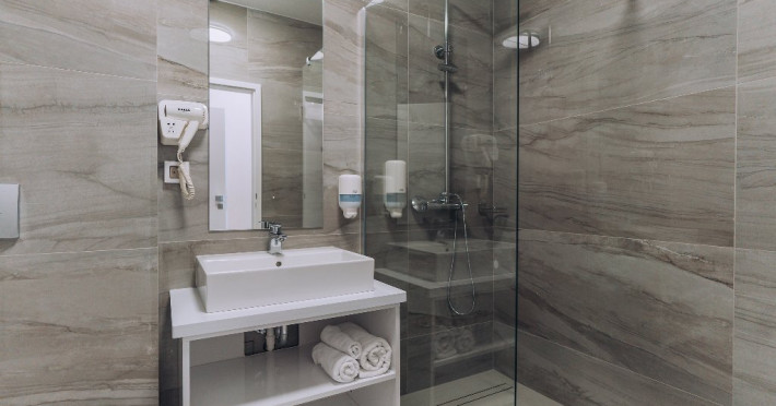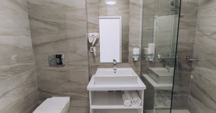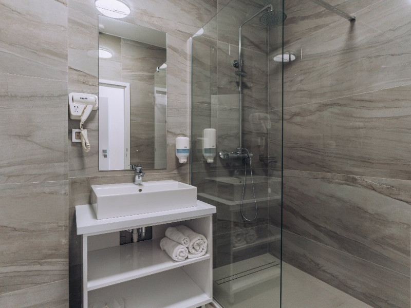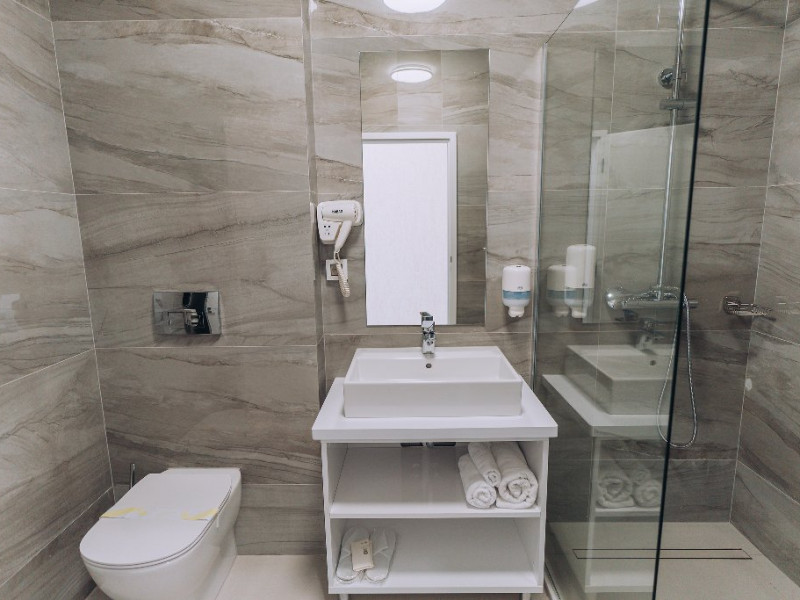 DESCRIERE CAMERE: Camerele de la etajul 1 au balcon, camerele de la etaluj 2 au logie (balcon frantuzesc). Toate camerele sunt matrimoniale. Hotelul nu dispunde pe paturi suplimentare.