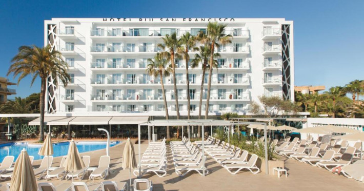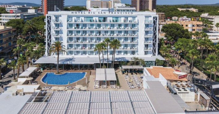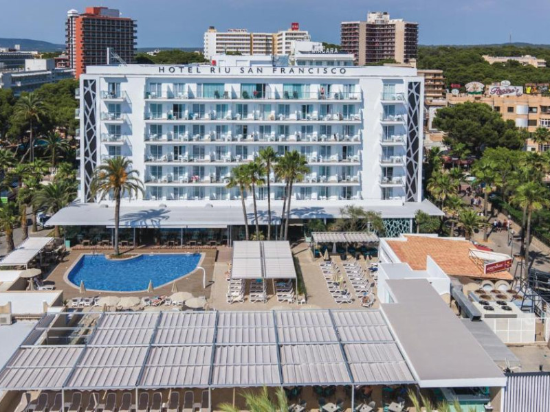 Hotel Riu San Francisco - Adults Only este un hotel elegant de 4 stele situat in prima linie a plajei Playa de Palma. Poziționat perfect la doar cațiva pași de nisipul fin al plajei, hotelul oferă oaspeților săi un ambient relaxant, dedicat exclusiv adulților.